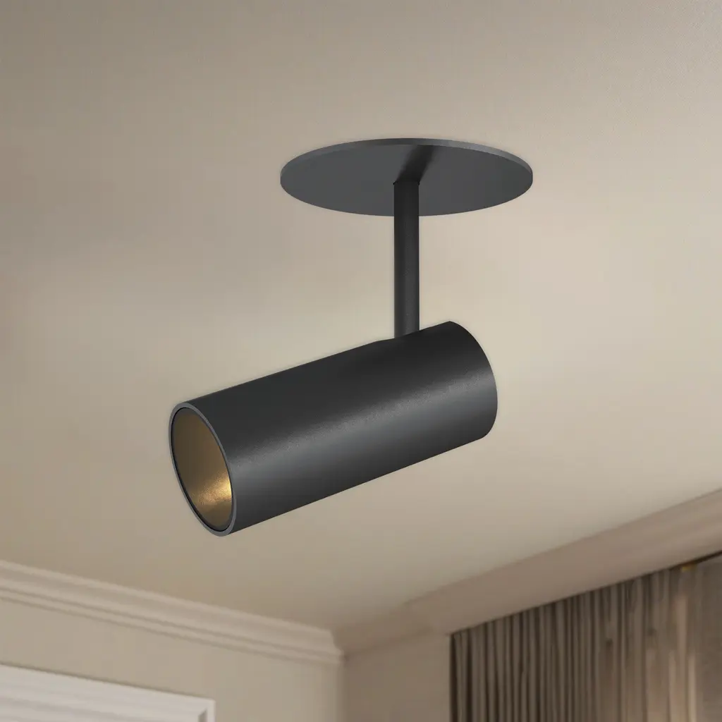 Recessed within the minute barrel of the quintessential adjustable lamp is a spot light assembly applied across the Downey line. By utilizing slim LED boards and recessed driver. the canopy scale is reduced to a fundamental trim plate and minimizes the visual footprint of the functional fixtures. Available in two petite cylindrical sizes and a single or multi-light configuration.