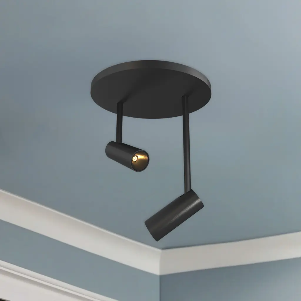 Recessed within the minute barrel of the quintessential adjustable lamp is a spot light assembly applied across the Downey line. By utilizing slim AC LED boards the canopy scale is reduced to a fundamental trim plate and minimizes the visual footprint of the functional fixtures. Available in two petite cylindrical sizes and a single or multi-light configuration.