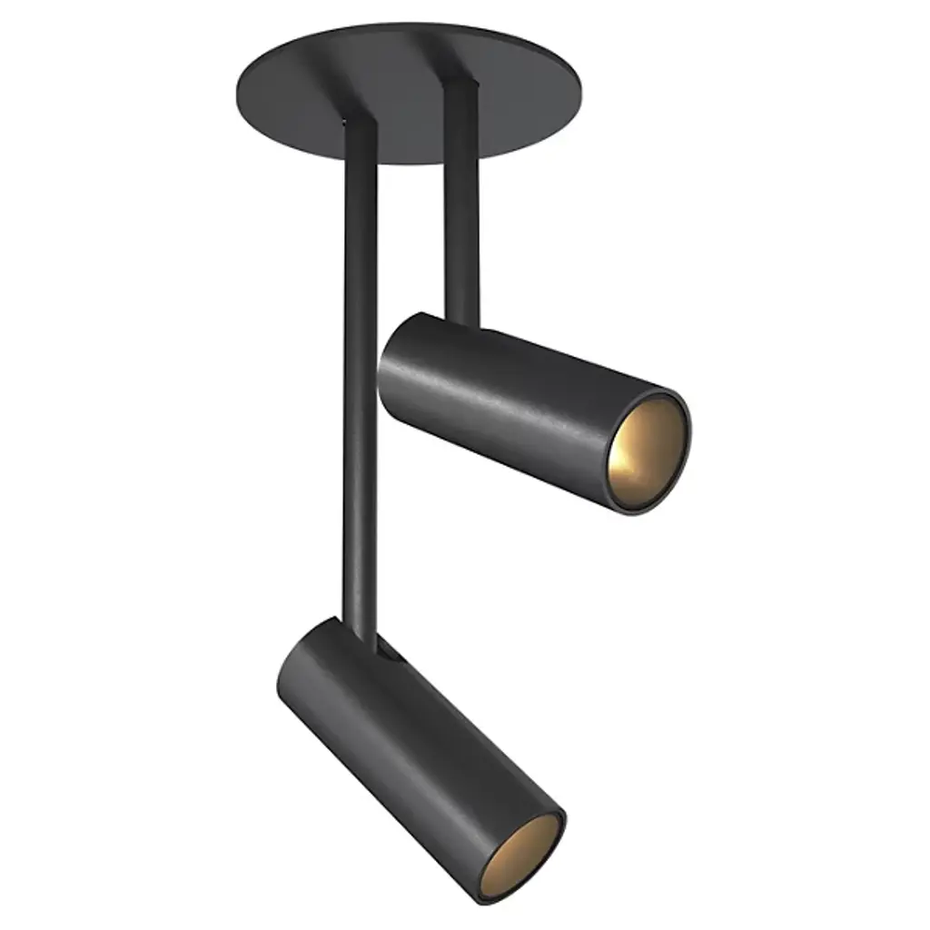 Minimal and modern, Kuzco Lighting presents the Downey LED Semi-Flushmount. Recessed within the minute barrel of the quintessential adjustable lamp is a spotlight assembly. By utilizing the slim LED boards, the canopy scale is reduced to a fundamental trim plate and minimizes the visual footprint of the functional fixtures.