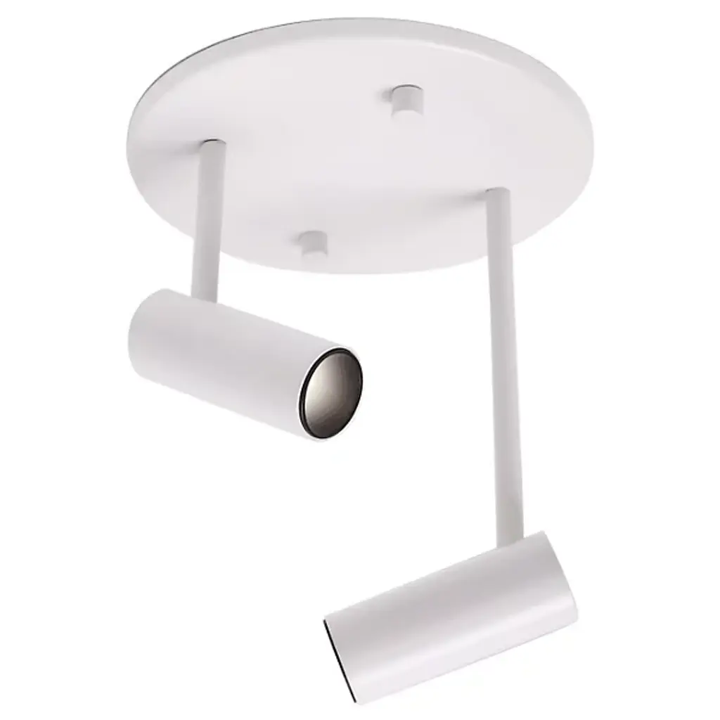 Minimal and modern, Kuzco Lighting presents the Downey LED Semi-Flushmount. Recessed within the minute barrel of the quintessential adjustable lamp is a spotlight assembly. By utilizing the slim LED boards, the canopy scale is reduced to a fundamental trim plate and minimizes the visual footprint of the functional fixtures.