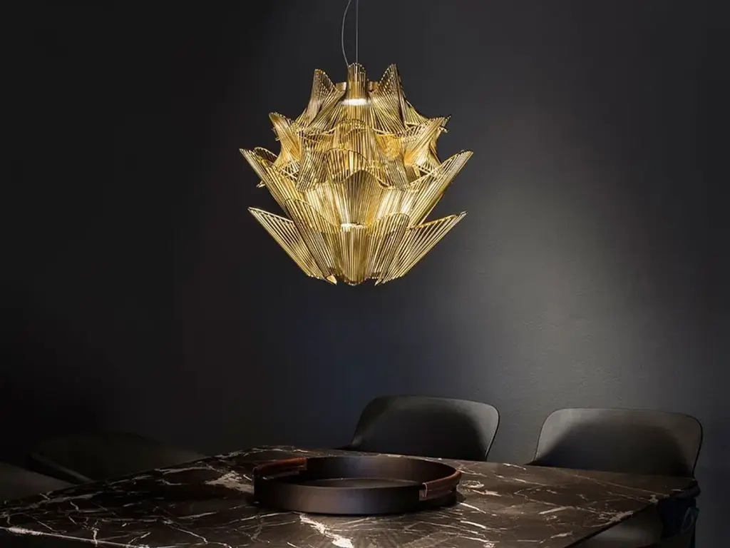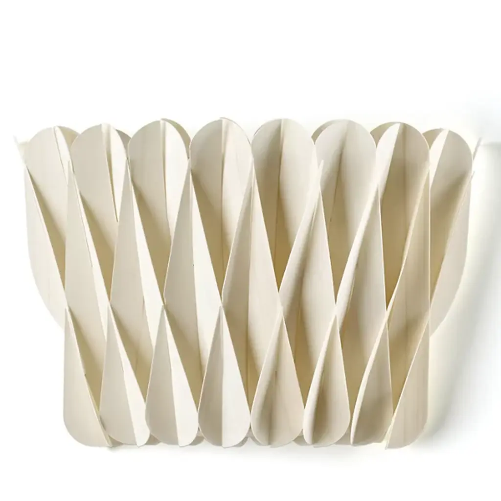 Inspired by childhood tales, the Dragon's Tail lamp transforms the auspicious power of dragons into a unique lighting creation. Using the Japanese art of Origami, hand-folded paper sections are attached to each other to create a tail-like form.