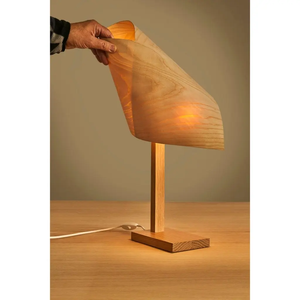 Drapé lamp by Jean-Baptiste Van den HeedeSigned, limited editionDimensions: 56cm highMaterials: Wenge wood, natural maple wood veneerThe Drapé table lamp is made of solid wenge wood with a shade of natural maple wood veneer.A second version is with solid oak and cherry screen.Each piece is signed. LED bulb.Jean-Baptiste Van den Heede defines himself as a cabinetmaker-designer and an artist of academic training and family tradition. He has achieved unique designs of national and international prestige and has several awards in avant-garde furniture.Born in Argentina in 1966, from an Argentine mother and a Belgian father. At 5 years of age he and his family moved to Belgium.To train as a wood professional, he first studied 4 years of carpentry. Then he continued training in cabinetmaking and carving for 5 more years. Always in search of contributing something more to his trade, he studied furniture and antique design, culminating this with the study of Sculpture at the Royal Academies of Fine Arts in Liège (Belgium) and graduating with honors.Work the stone, the wood and experience the forge. From the beginning it is directed towards a search for signs, abstract writings and unrealistic figures in analogy with other “primitive” cultures. He taught drawing and sculpture in Brussels at the private school “la main et l´ esprit” As well as summer courses in Liege (Belgium) “les ateliers d´art contemporain”.In 1995 he went to Barcelona where he taught and investigated the reliefs of different supports such as trees, floors, and especially sewer covers.He searched again analogies between current art and prehistoric, African art, etc.Participated in several exhibitions both at the artistic level and avant-garde design.In 2002, he moved down to Albacete and then to a town in the province where he still works.It is defined as “a search engine without haste or guidelines.” He says: “I only work when I feel a strong and positive inspiration invade me, an energy that I capture from matter, from the air and that I return doing the work until I feel a connection with it.”Private workshop of contemporary art in Letur (Albacete) until 2009.He currently works in his workshop-studio in the Sierra de Madrid (Guadalix de la Sierra) following his career as a cabinetmaker-designer and artist while teaching his trade to students interested in wood.