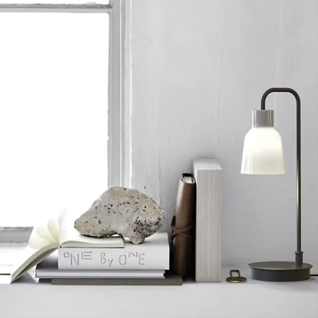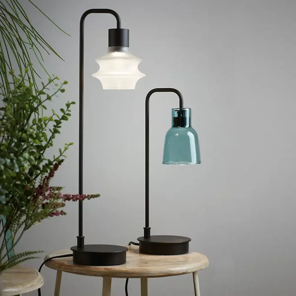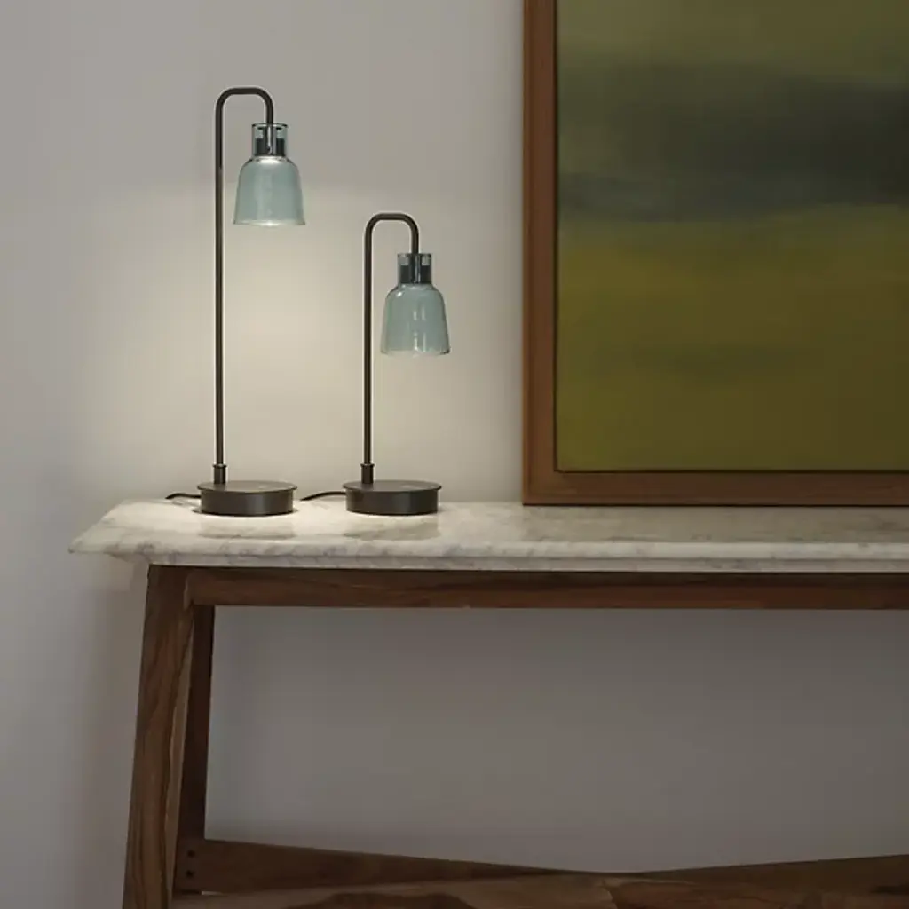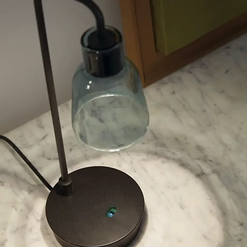 The Bover Drip Mini LED Table Lamp offers an elegant way to light up your table space. With a cool, clean glass shade, this table lamp brings a calm visual effect during task activities, and washes the surface with a warm ambient light. Stands on a solid, metallic base with cord. Switch conveniently located at arm’s length for ease of use.