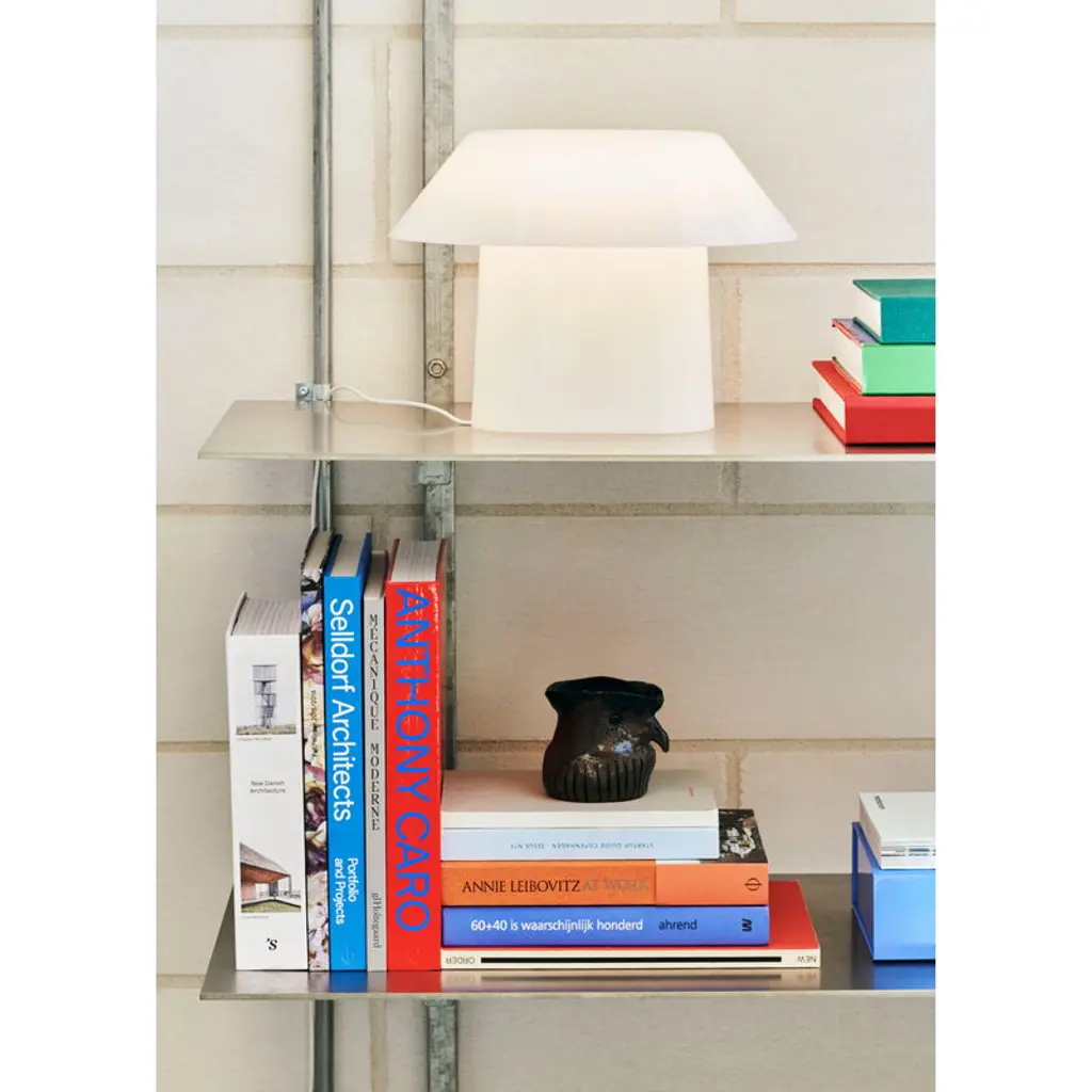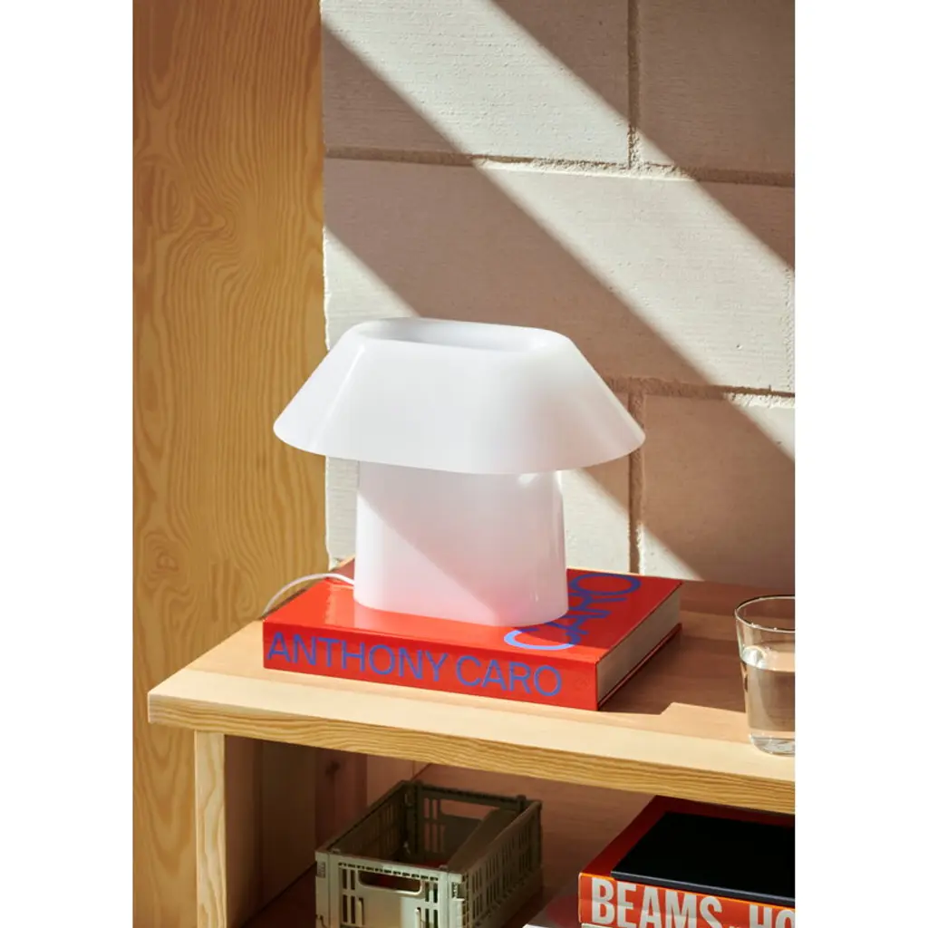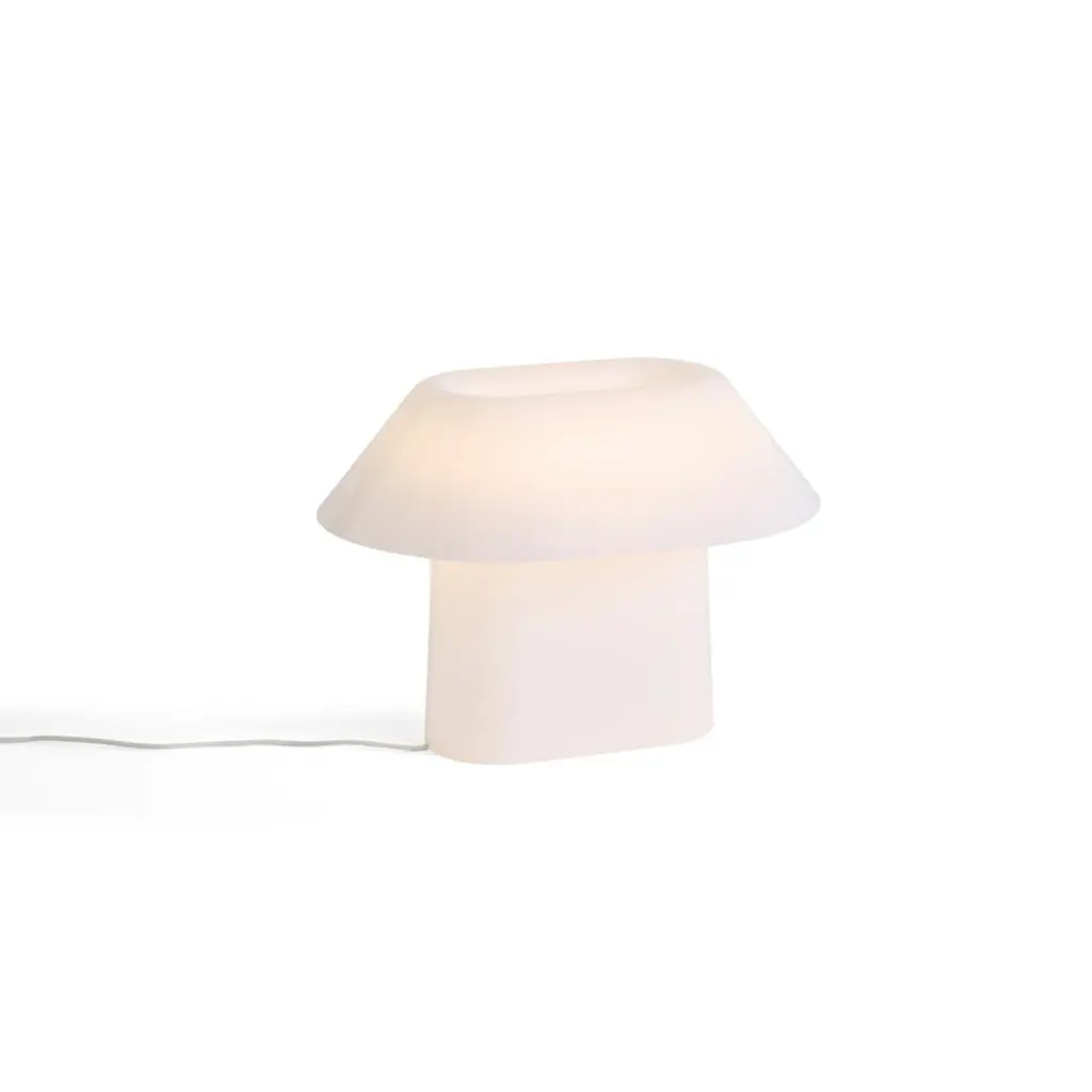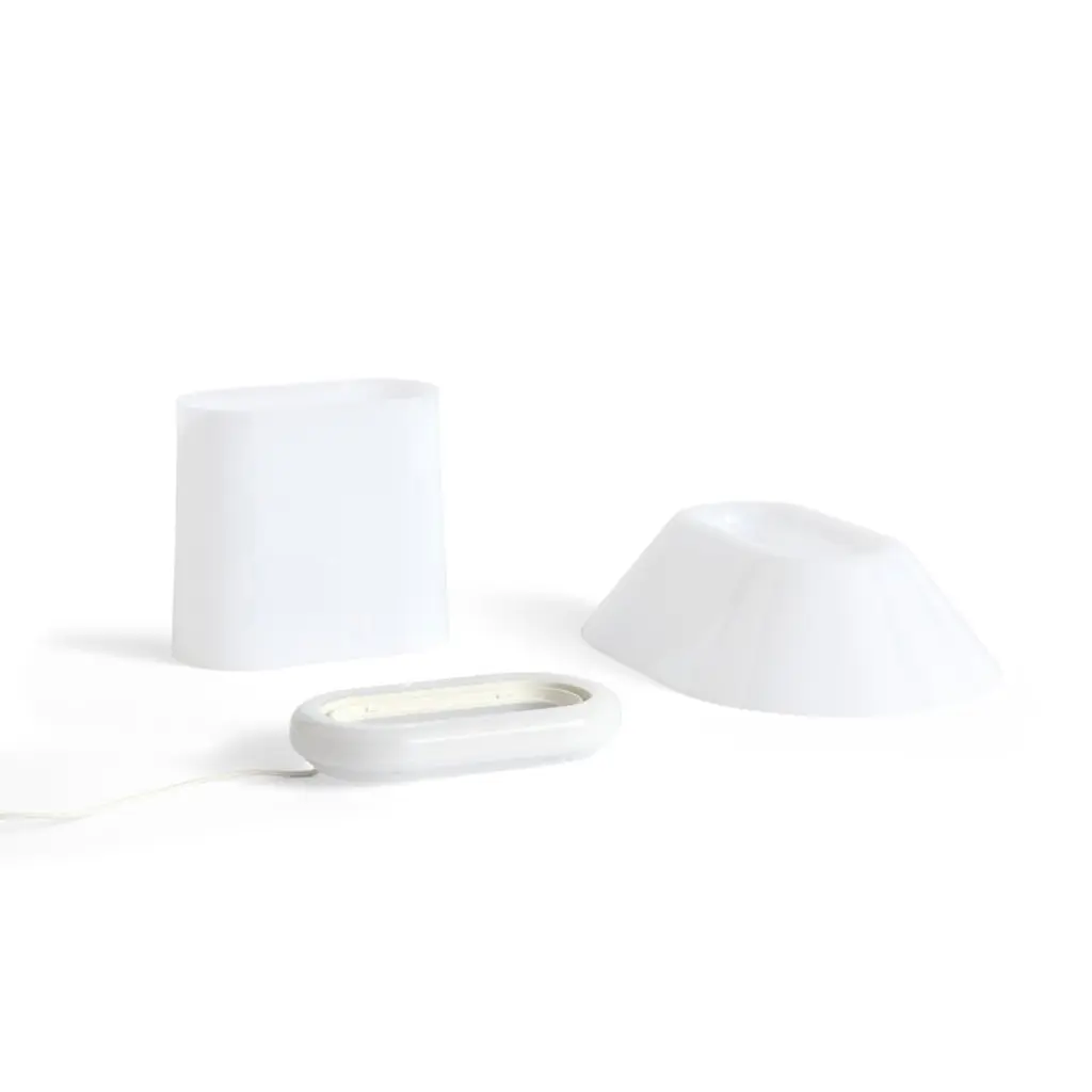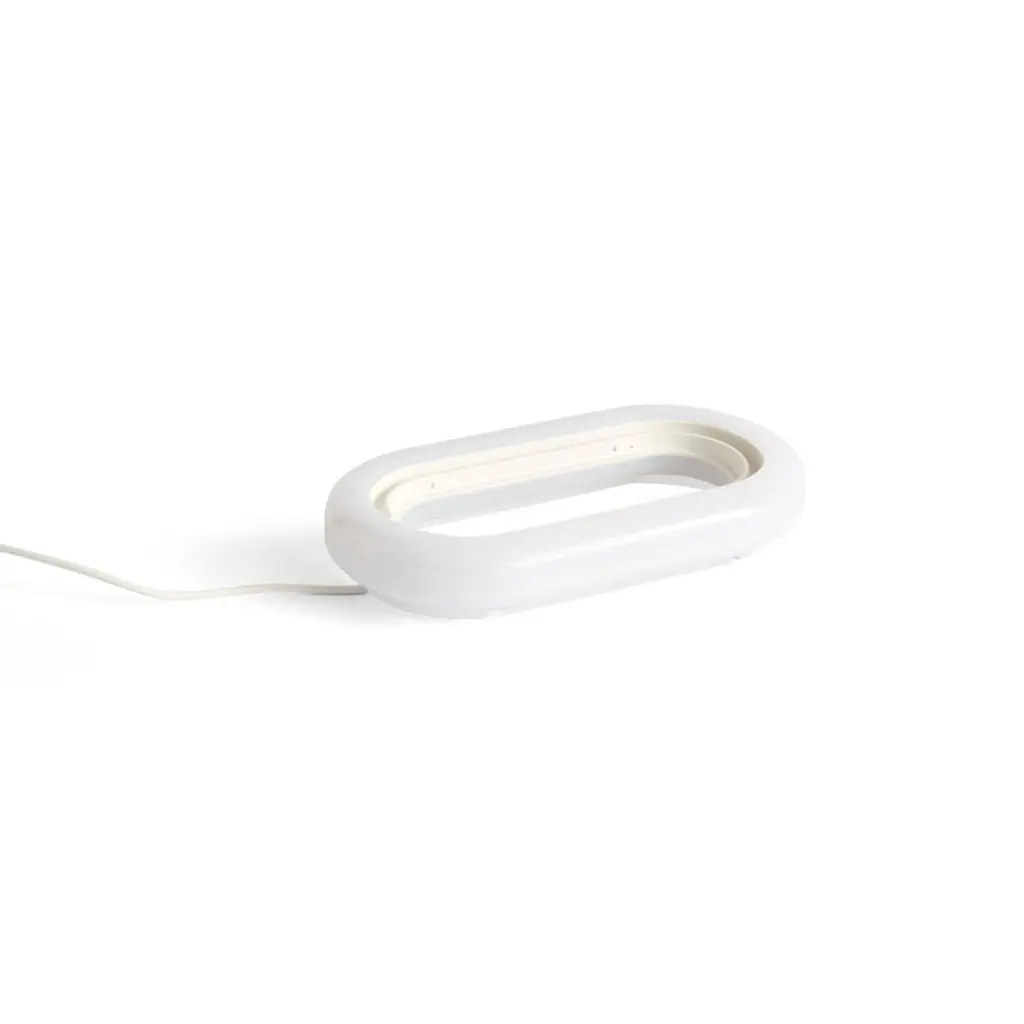 HAY's Drome table lamp emits an even, softly glowing light that extends from the top of the shade down to its base. Designed by Christian Juhl, the Drome lamp features an elliptical shape, making its appearance and form change subtly depending on the viewing angle. Made from white opal acrylic, the Drome is equipped with a step dimmer, allowing you to adjust the light intensity to suit the current space and mood. The light source consists of LED strips integrated into the hollow interior of the lamp, which can be replaced when they reach the end of their lifespan. The sculptural Drome lamp is a charming addition to a bedside table, windowsill or bookshelf, perfect for both home and public spaces.