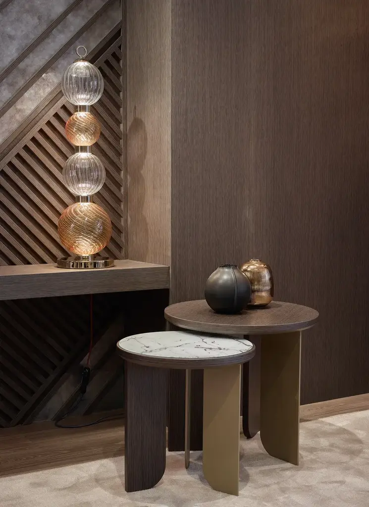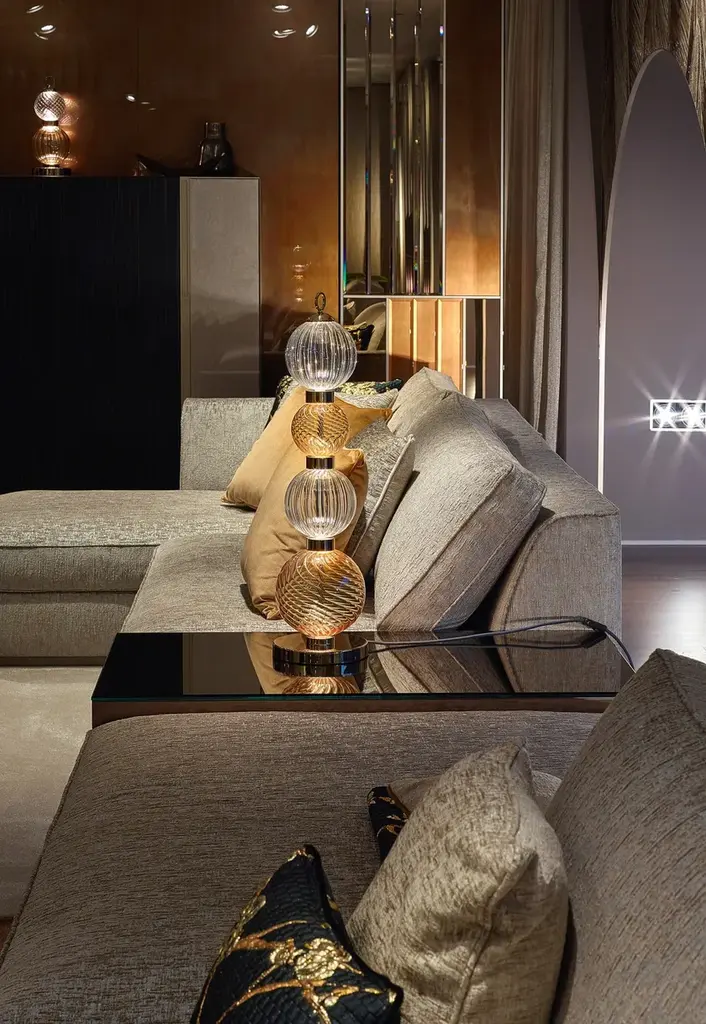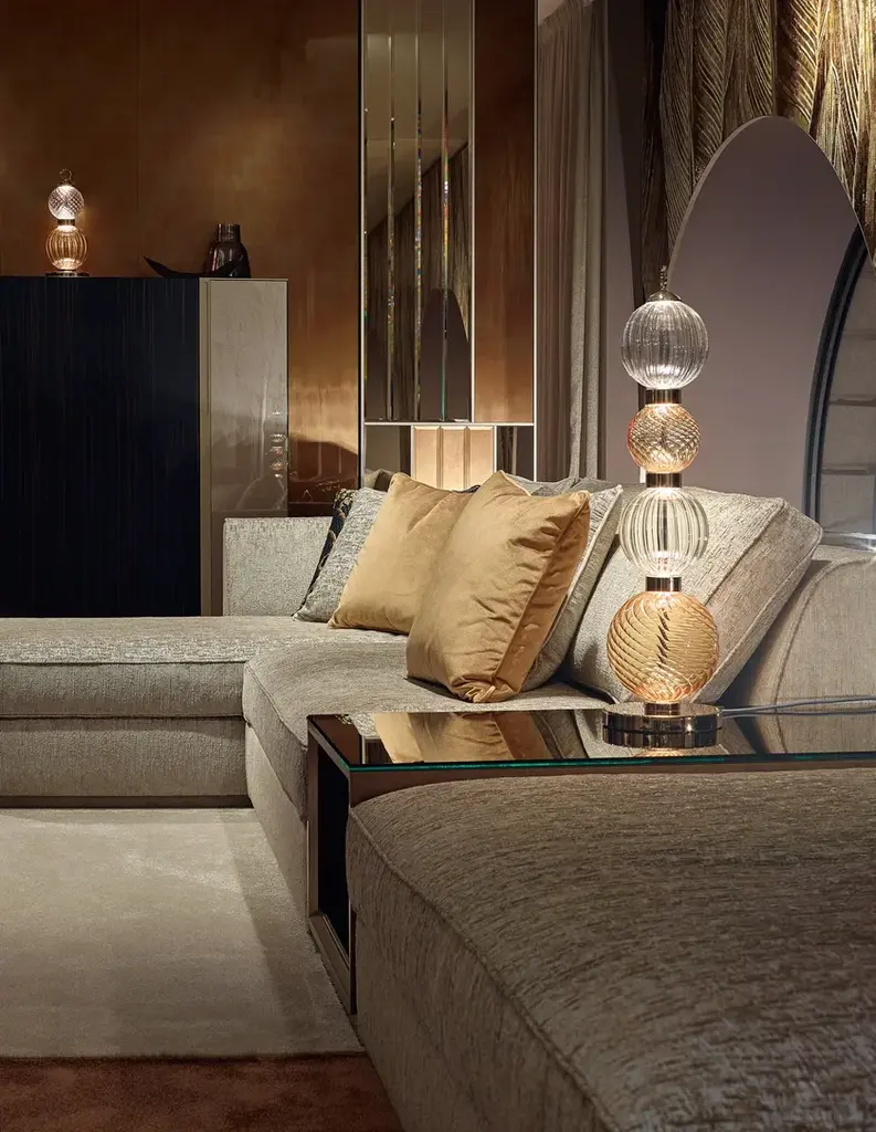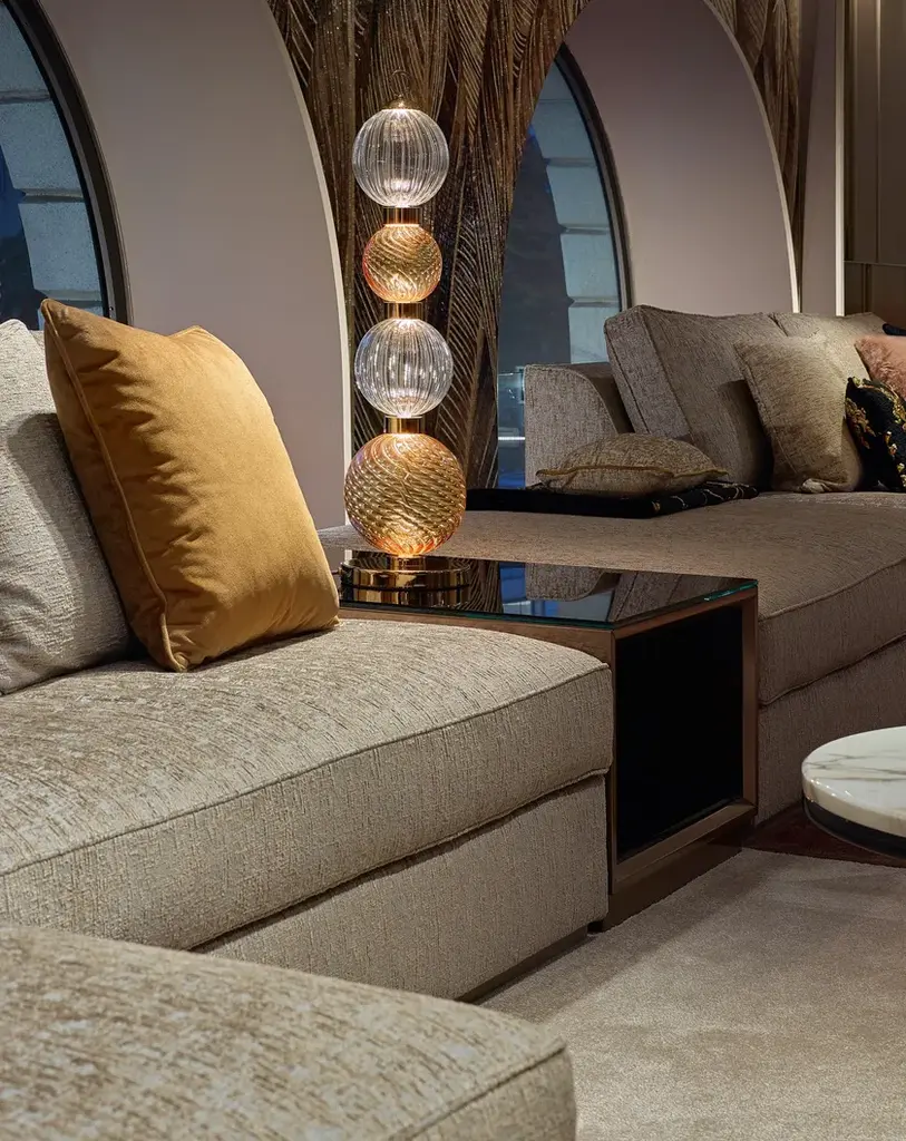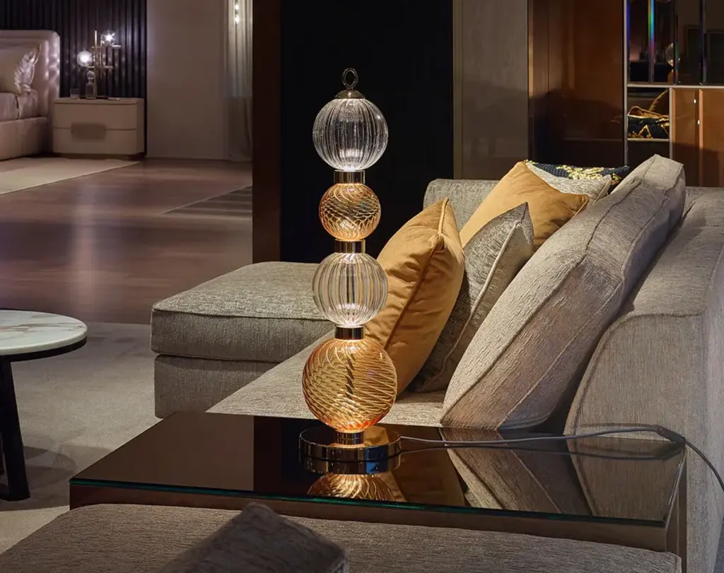 Drop is a table lamp with metal frames in satin finish and spheres in pyrex glass. BULB INFORMATION4X4W LED - 2700K - 1760 LUMENVOLTAGE220 VCERTIFICATIONCE