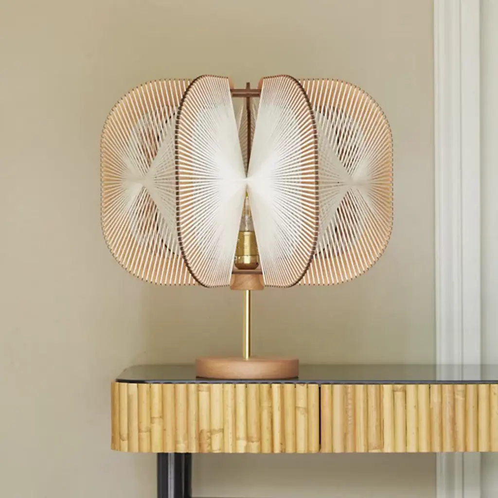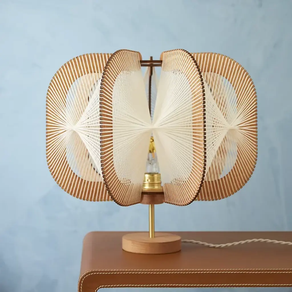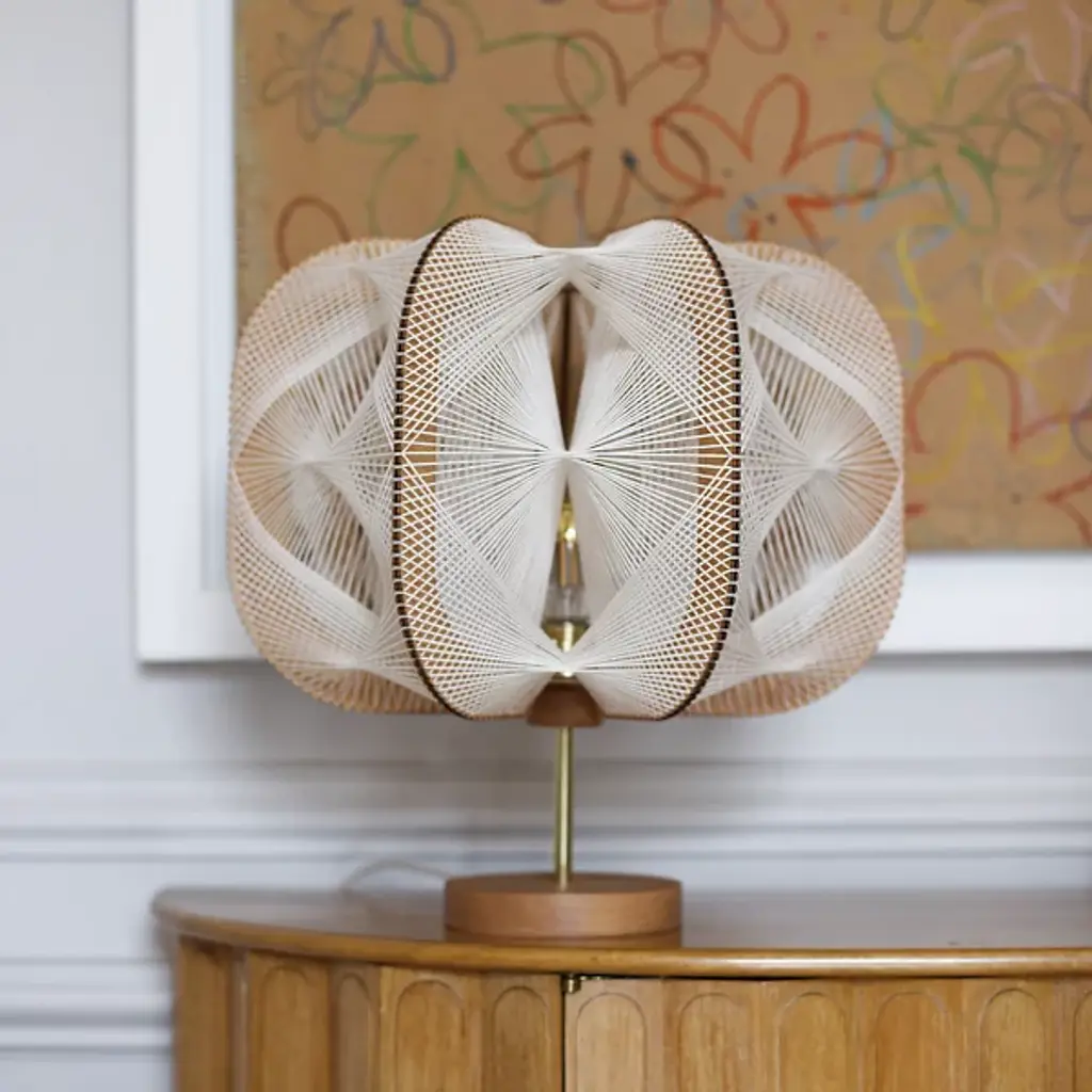 The Drumjee Table Lamp from LaFabLight is a beautiful blend of soft lighting and eye-catching design. Hand-woven over sculptural wooden arcs, its crossed ribbon pattern filters and shapes light, casting a warm, inviting glow. With its refined style and artistic charm, it fits effortlessly into any room, whether on a desk, coffee table, console, or bedside. It’s a versatile piece that brings both function and flair, adding a cozy, decorative touch wherever it’s placed.