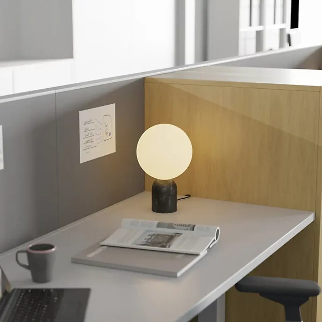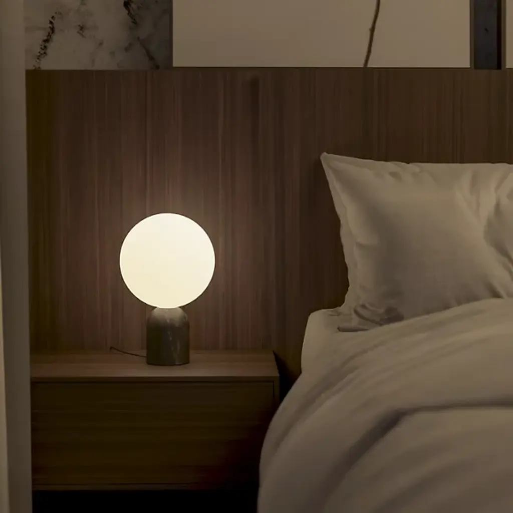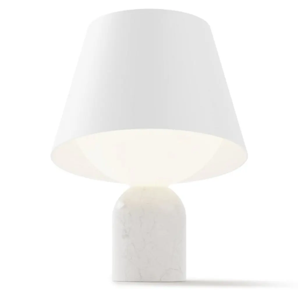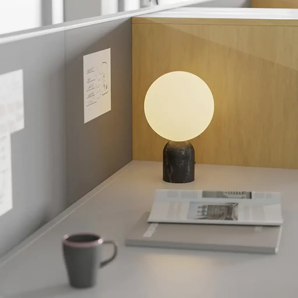 The Dude LED Table Lamp from Koncept features a classic and elegant style with modern customizability. The shade can tilt and adjust its angle like a hat on one's head, and a rotary dial on the marble base offers full-range dimming capabilities; both features work together to create the perfect lighting for a variety of settings. Designed by Kenneth and Edmund Ng, it shines a warm light down on the base, accentuating the beauty of the marble, and the askew plastic shade gives it a playful personality.