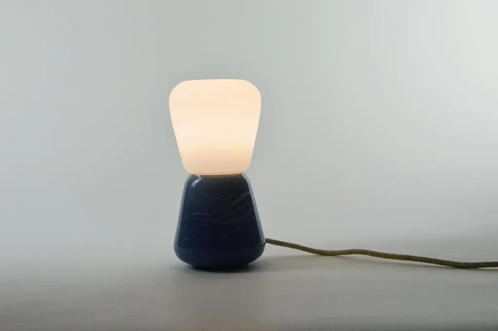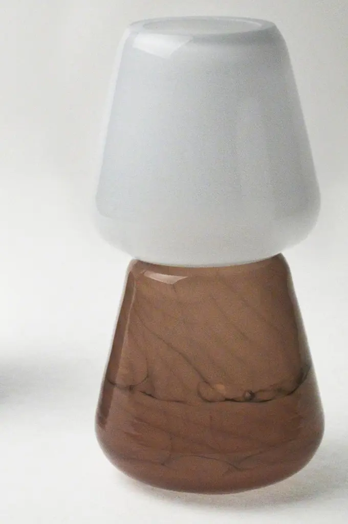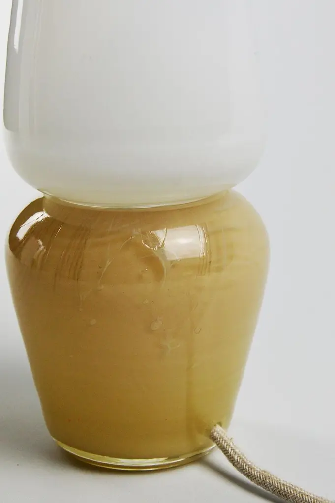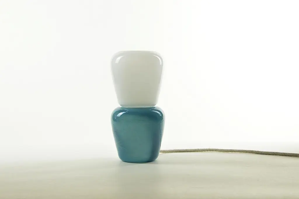 Duo table lamp by Atelier GeorgeOne of a KindDimensions: Ø 11.5 x 22.5 cmstem length : 165 cmMaterials: Handblown Glass, Brass230/240 Volts 50-60 Hz 3 WattDifferent colours available. The colour choice determines the shape of the lamp.All our lamps can be wired according to each country. If sold to the USA it will be wired for the USA for instance.The Moire collection is the result of a work on optical and transparency effects. It is named after the «moiré» patterns of certain fabrics like tulle, which is obtained by overlaying two similar printed or woven patterns. The observation of these wavy,iridescent patterns inspired the textures found in the collection. The color palette is beige, gray and blue, evoking stone or water.This collection forms the basis of our signature style, simple by design. It comprises light fixtures, tableware and interior accessories, all hand-made using hot glass crafting techniques.The Atelier George is a French design and glassblowing studio. Each piece is hand-made using hot glass crafting techniques. To bring you a set ofunique objects, the crafting process and the color finish makes every piece slightly different from the next.