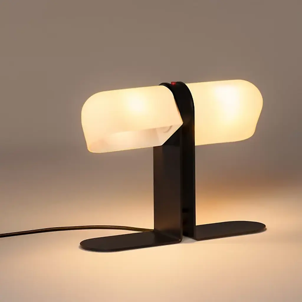 The Duo Table Lamp from Santa & Cole offers refined, unobtrusive lighting with a refined sense of purpose. Designed by André Ricard and made in Spain, this compact table lamp was created for executive desks—providing focused illumination without blocking sightlines between colleagues or guests. Its low-profile aluminum frame supports a simple glass shade, delivering close-range light that enhances workspaces without distraction. Perfect for maintaining an open visual flow, the design brings clarity and comfort to modern professional settings and personal spaces.