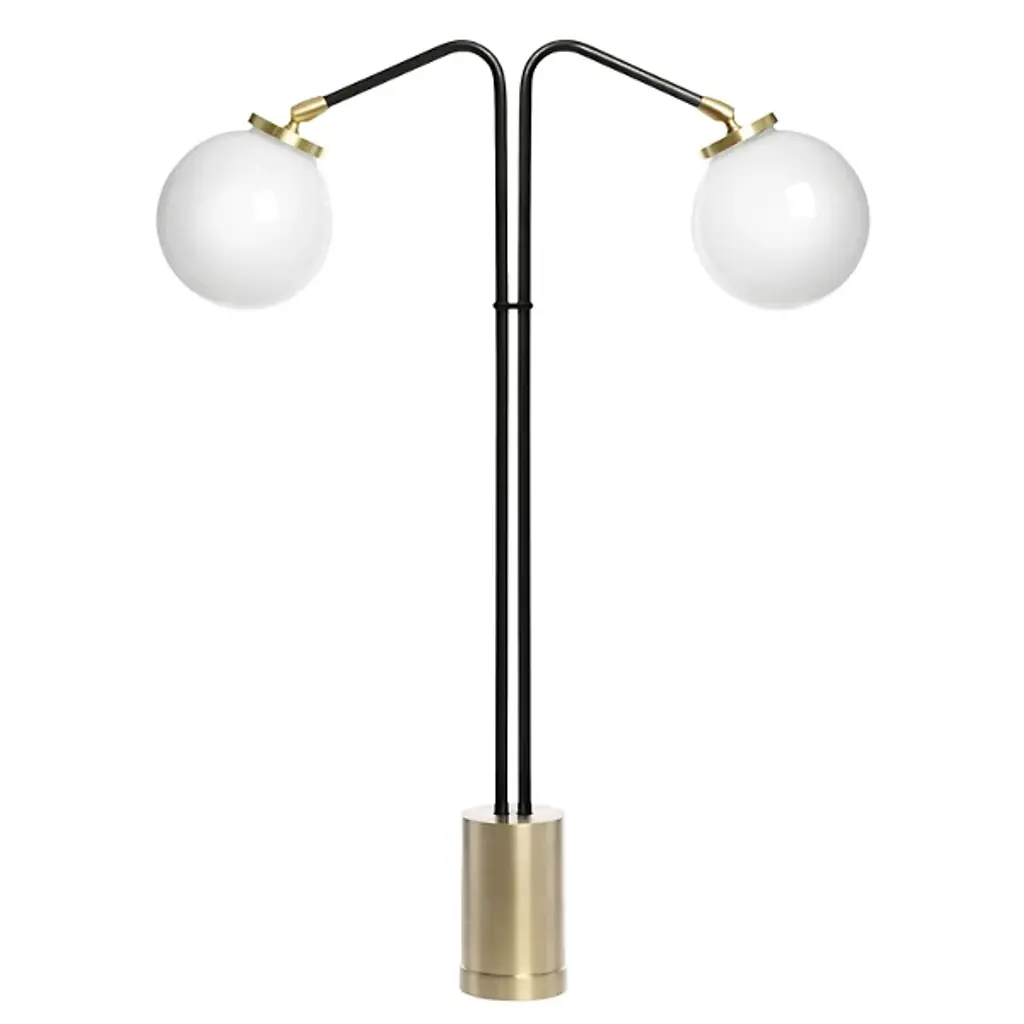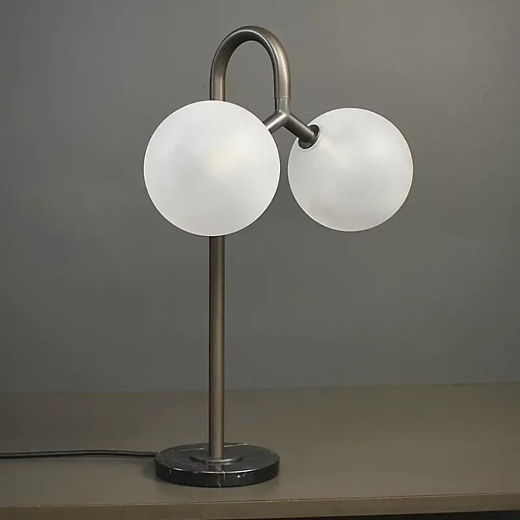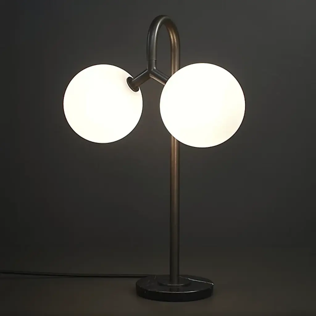 The Duo Table Lamp from Blueprint Lighting translates their successful sconce design into a freestanding marvel. Inspired by Bauhaus principles, this USA-made lamp pairs blown opal glass spheres with a solid marble base for perfect balance. The brass framework creates natural transitions between materials, while the inline switch offers straightforward control. Perfect for both focused tasks and ambient lighting, its pure geometric forms make it a natural addition to any space.