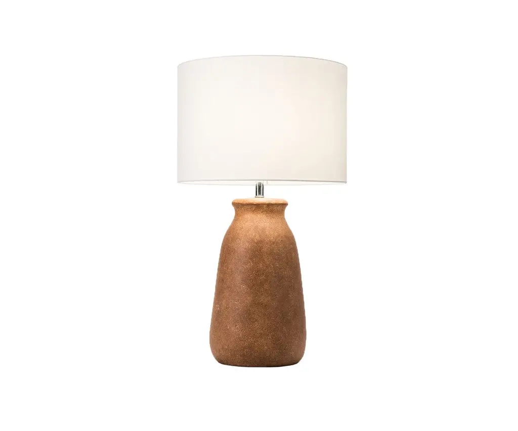 The Earthy Luster Lamp brings a rustic feel to your space. Featuring a matte-finished base in tones of dusty burnt umber and a fabric shade, this piece could be paired with rustic leather or a more contemporary aesthetic. Layer this lamp with other lights in your home for sense of warmth and welcome illumination.