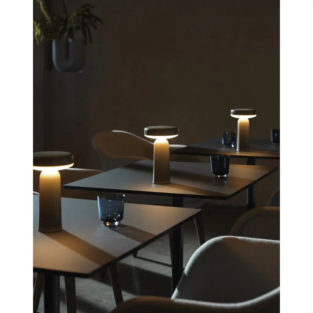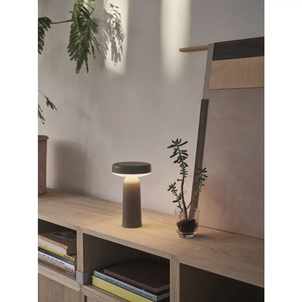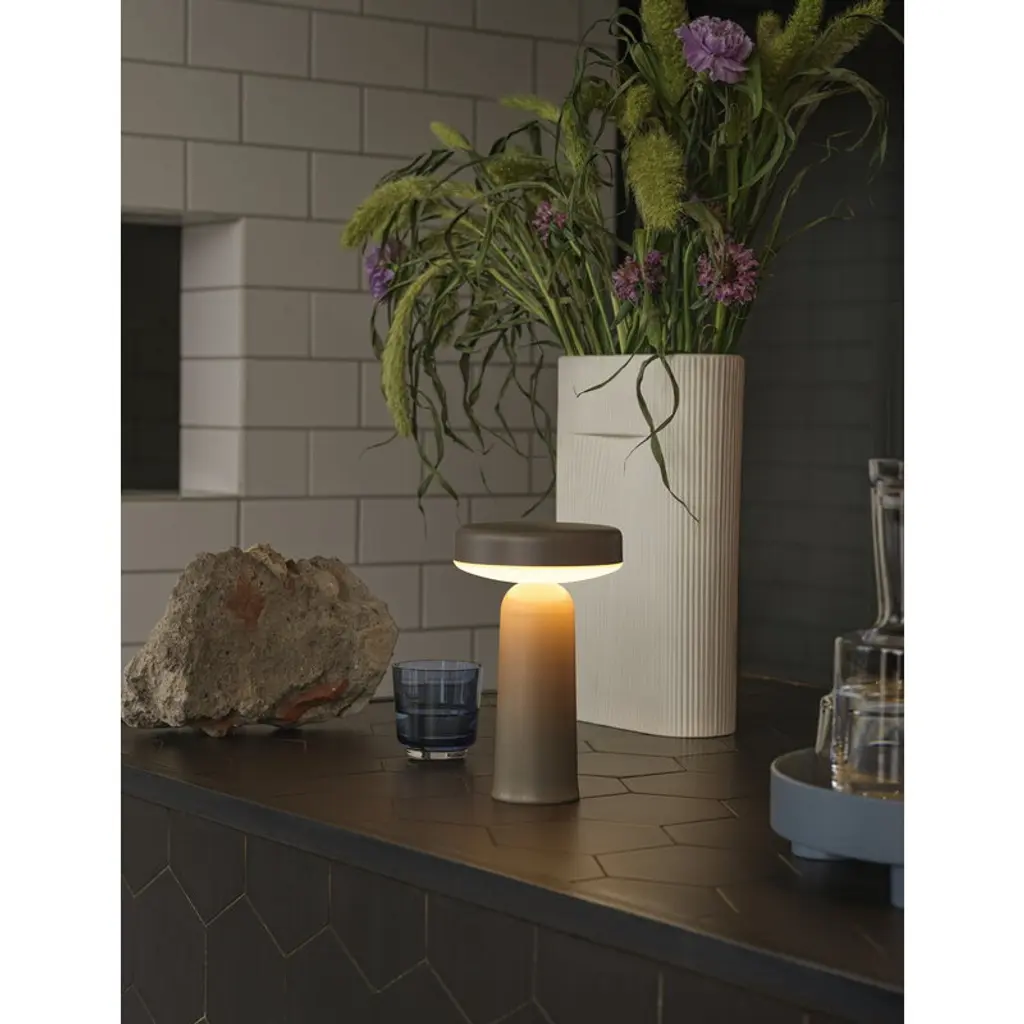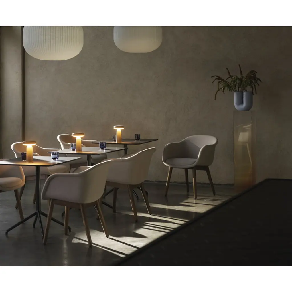 Muuto's portable Ease lamp can be carried wherever you decide to go. Designed by Johan van Hengel, the table lamp is influenced by traditional table lamps with an elegant and simple design that is now combined with modern technology. The cordless Ease lamp has a USB rechargeable battery that provides up to 8 hours of light with the setting 100%. A three-position dimmer makes it easy to adjust the level of light to suit your needs, in every possible space and situation. The portable Ease lamp has an IP54 rating ensuring that you can take the luminaire outdoors, as well. The atmospheric, glare-free light is perfect for illuminating garden parties after dark, but Ease also finds a place inside the home as a bedside reading lamp, a mood light in the living room or even in the hallway as a handy extra light.