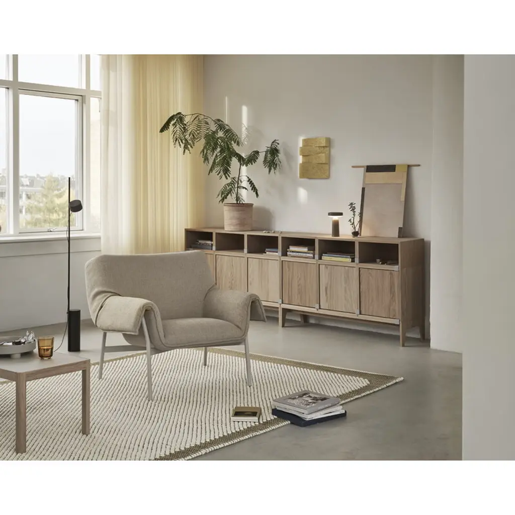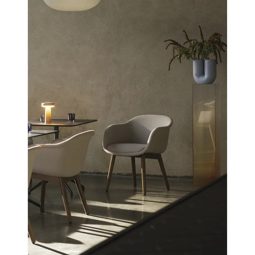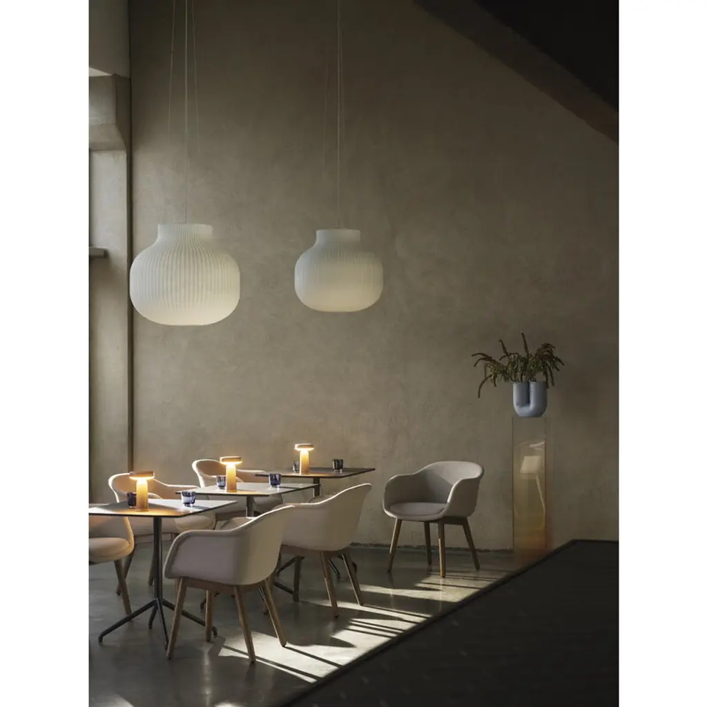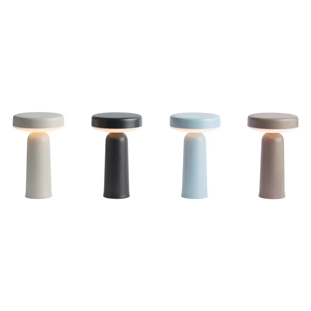 Muuto's portable Ease lamp can be carried wherever you decide to go. Designed by Johan van Hengel, the table lamp is influenced by traditional table lamps with an elegant and simple design that is now combined with modern technology. The cordless Ease lamp has a USB rechargeable battery that provides up to 8 hours of light with the setting 100%. A three-position dimmer makes it easy to adjust the level of light to suit your needs, in every possible space and situation. The portable Ease lamp has an IP54 rating ensuring that you can take the luminaire outdoors, as well. The atmospheric, glare-free light is perfect for illuminating garden parties after dark, but Ease also finds a place inside the home as a bedside reading lamp, a mood light in the living room or even in the hallway as a handy extra light.