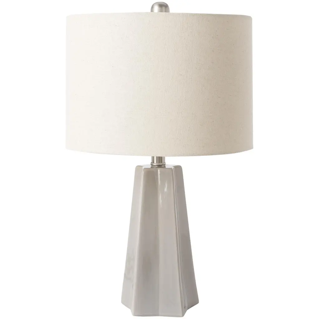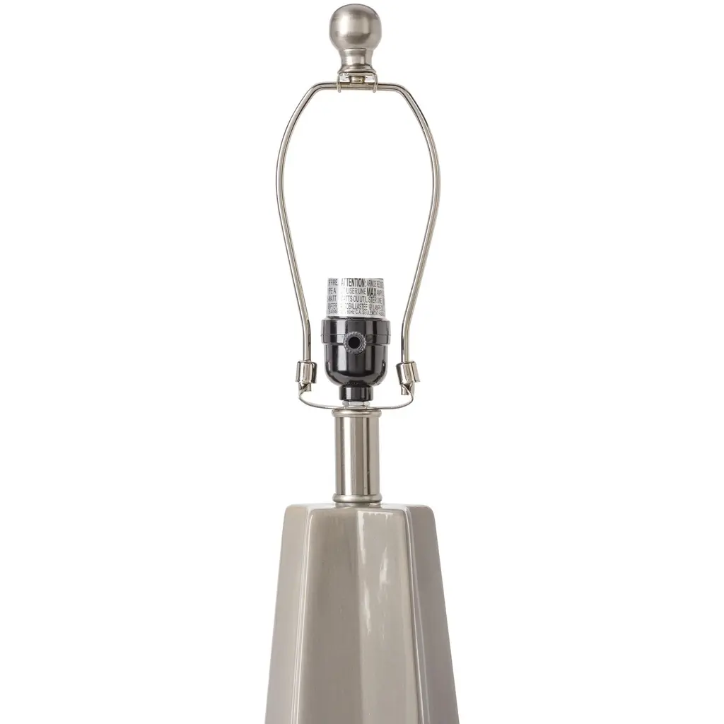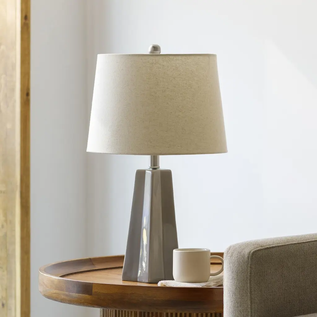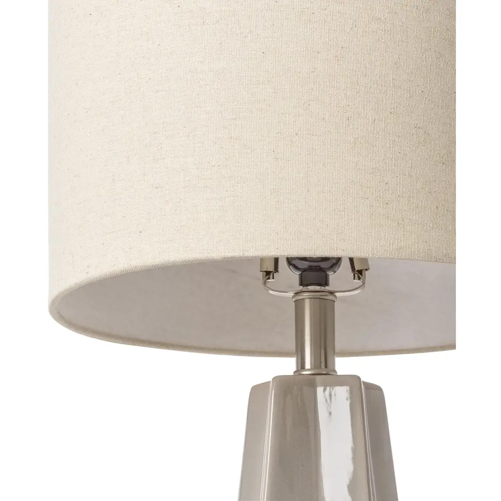 The elegant and versatile design of this table lamp makes it a great addition to any living room, bedroom, or office space. The Easel table lamp is made from quality Metal, and Ceramic. An included Beige linen shade finishes the look. Standing at 22.00 inches, this lighting piece will fit perfectly in any space. Spot clean with a white cloth.