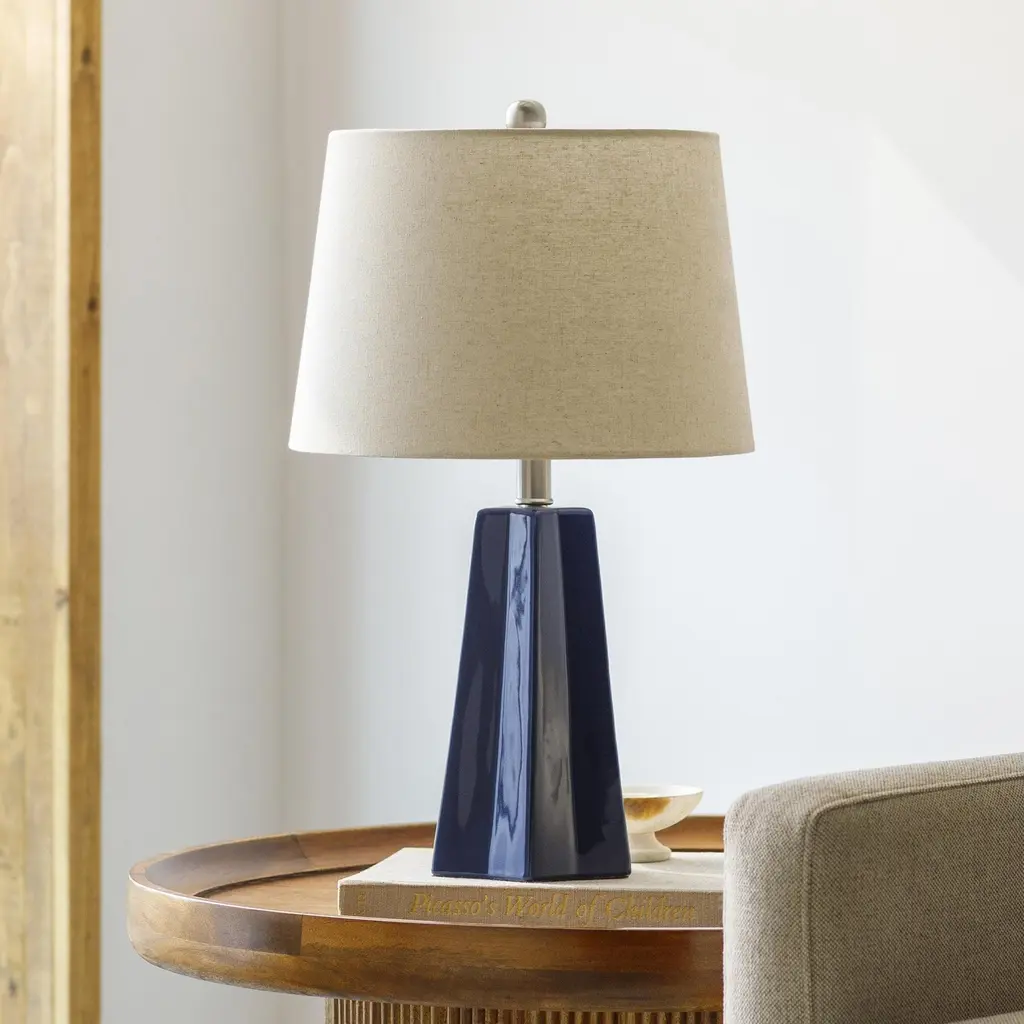 The elegant and versatile design of this table lamp makes it a great addition to any living room, bedroom, or office space. The Easel table lamp is made from quality Metal, and Ceramic. An included Beige linen shade finishes the look. Standing at 22.00 inches, this lighting piece will fit perfectly in any space. Spot clean with a white cloth.