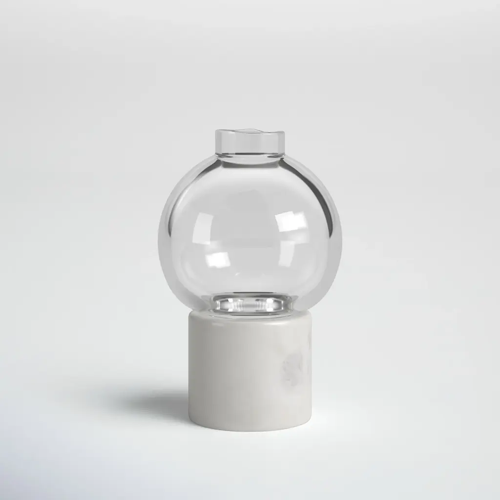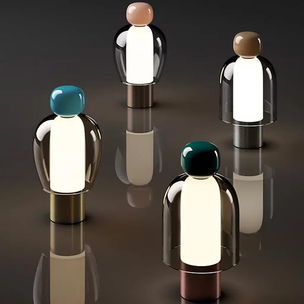 With a playful spirit, the Easy Peasy Rechargeable LED Table Lamp by LODES has a sculptural, minimal look that adds some character to the spaces it brightens. Designed by Luca Nichetto, the rounded shapes that combine to create the silhouette of this lamp are reminiscent of a cute doll-like character and are enhanced by a fun color combination. A metal base supports an energy-efficient light source and diffuser that are encased by a glass bell and this piece is topped with a softly rounded nob. This nob can be turned to illuminate this rechargeable lamp and control its intensity, lending a captivating, interactive feel to this design.