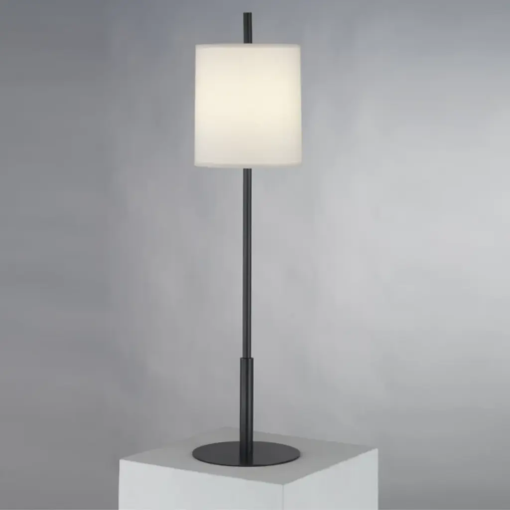 Feast your eyes on this understated yet delectable piece of lighting. The Echo Buffet Table Lamp by Robert Abbey possesses height and slimness that make it ideal for placement on a buffet table, though it also works well anywhere else you’d like. The cylindrical shade is made of Fondine fabric, simply finished in Off White for warm diffusion of the light. The slim cylindrical base that holds up the bulb can be finished in the customer’s choice of Metallic finishes.