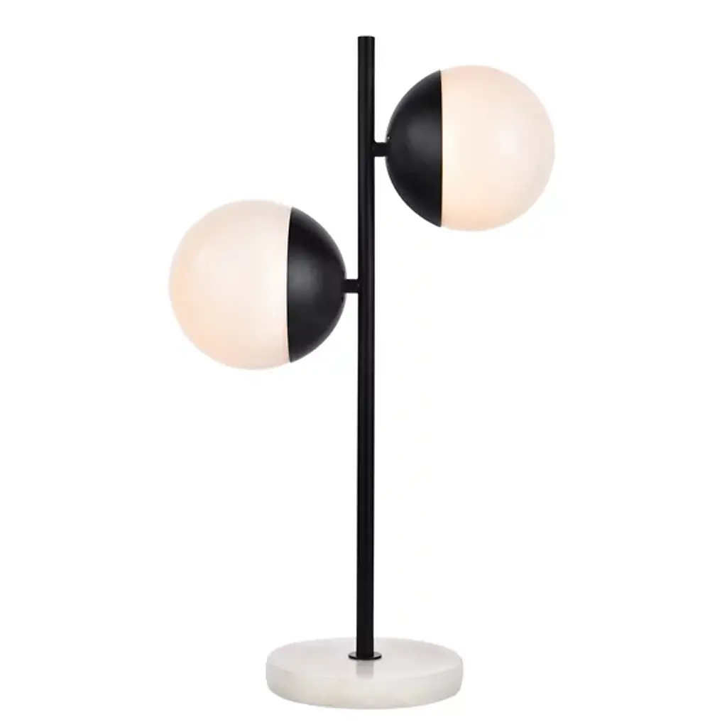 Refined style with a practical design, Eclipse Table Lamp bring cosmopolitan sophistication anywhere, especially to an entryway, office, bathroom, bedroom, or kitchen. The smooth marble base anchors the table lamp and comes in a brass finish. A touch of color on top of the frosted white spherical glass shade brings character to this classic style. Living in the big city has never been this easy.