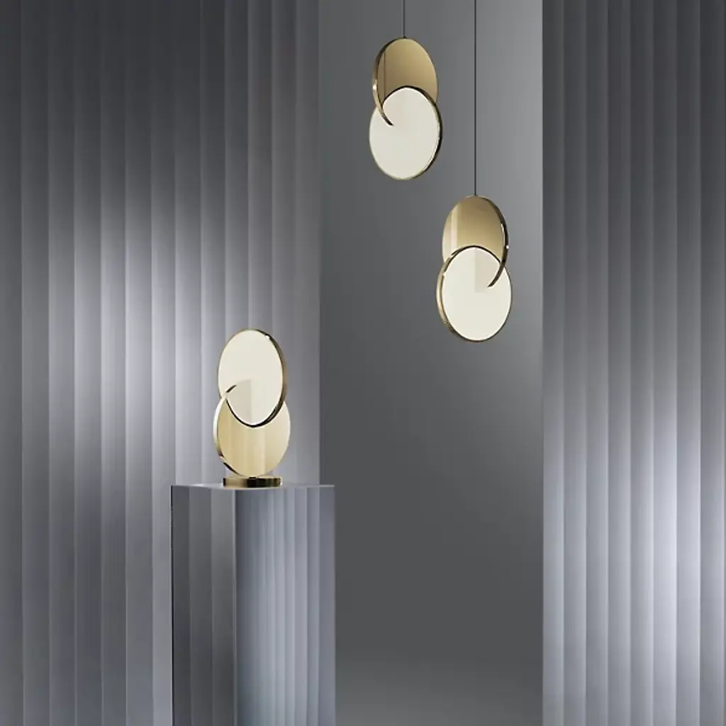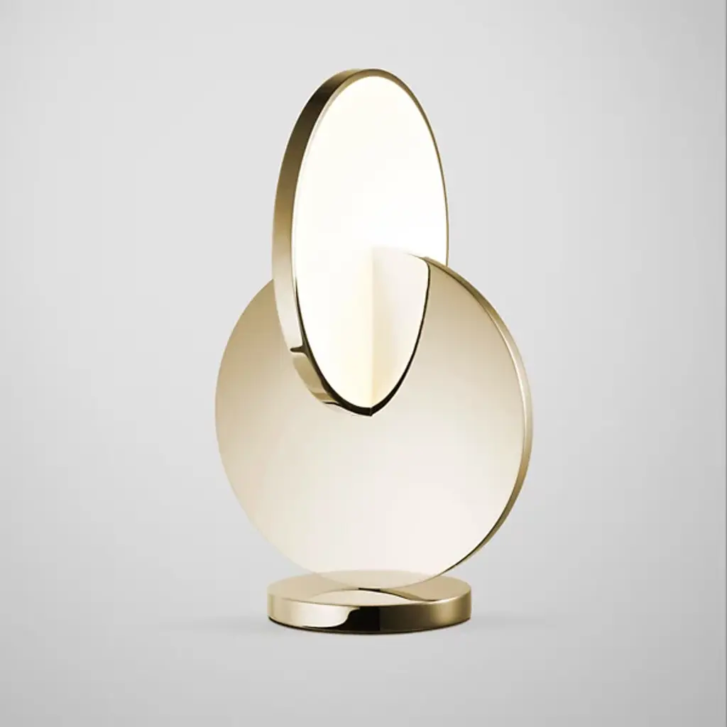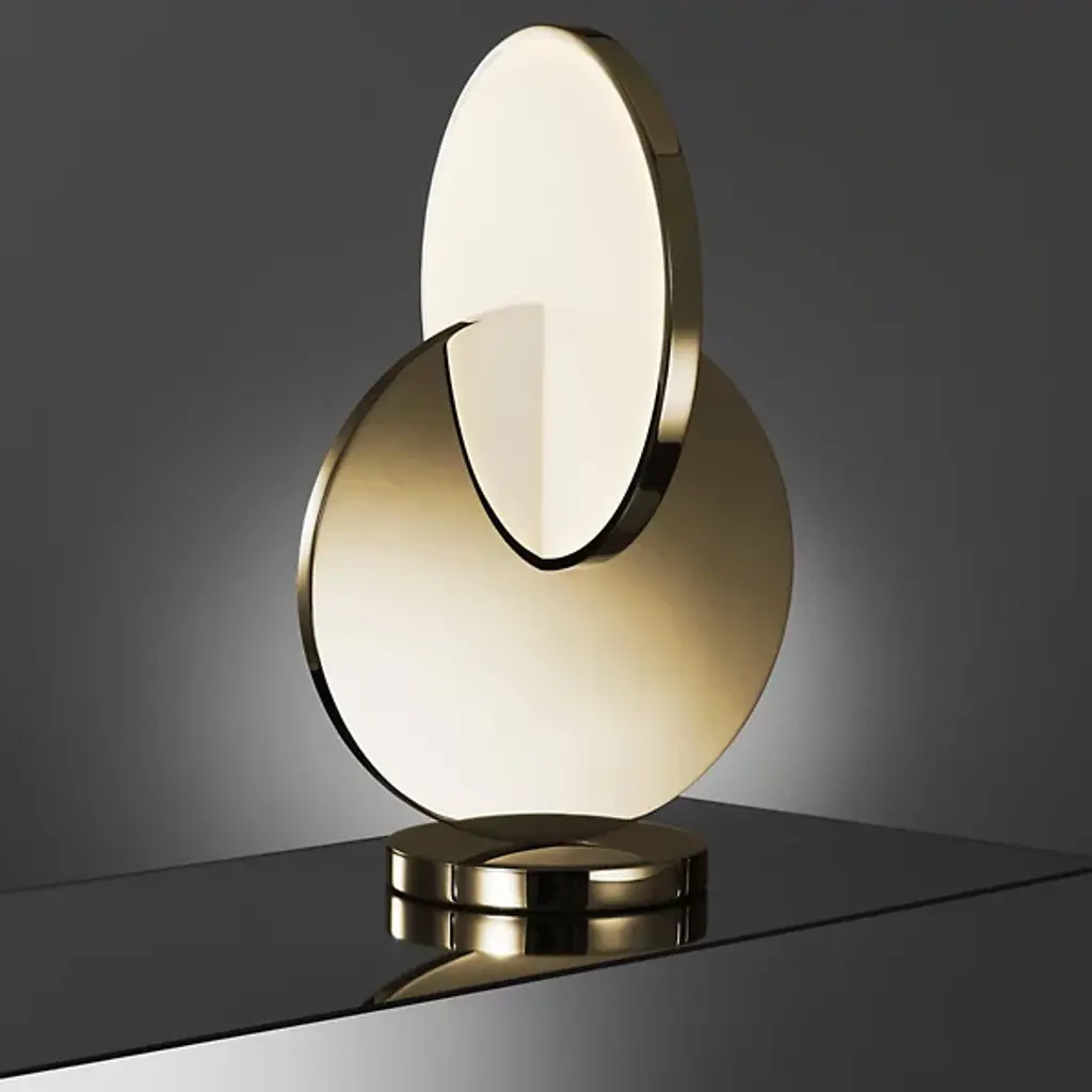 Give your living space a decorative, modern look with the Eclipse Table Lamp by Lee Broom. Its design features two stacked perpendicular discs made of Chrome and Acrylic that stand atop a polished mirror base. Once lit, integrated LEDs permeate through the Acrylic disc, creating a soft ambient glow that is both pleasant and useful. Together, the discs can rotate 90°, helping you position the light where it is most needed.