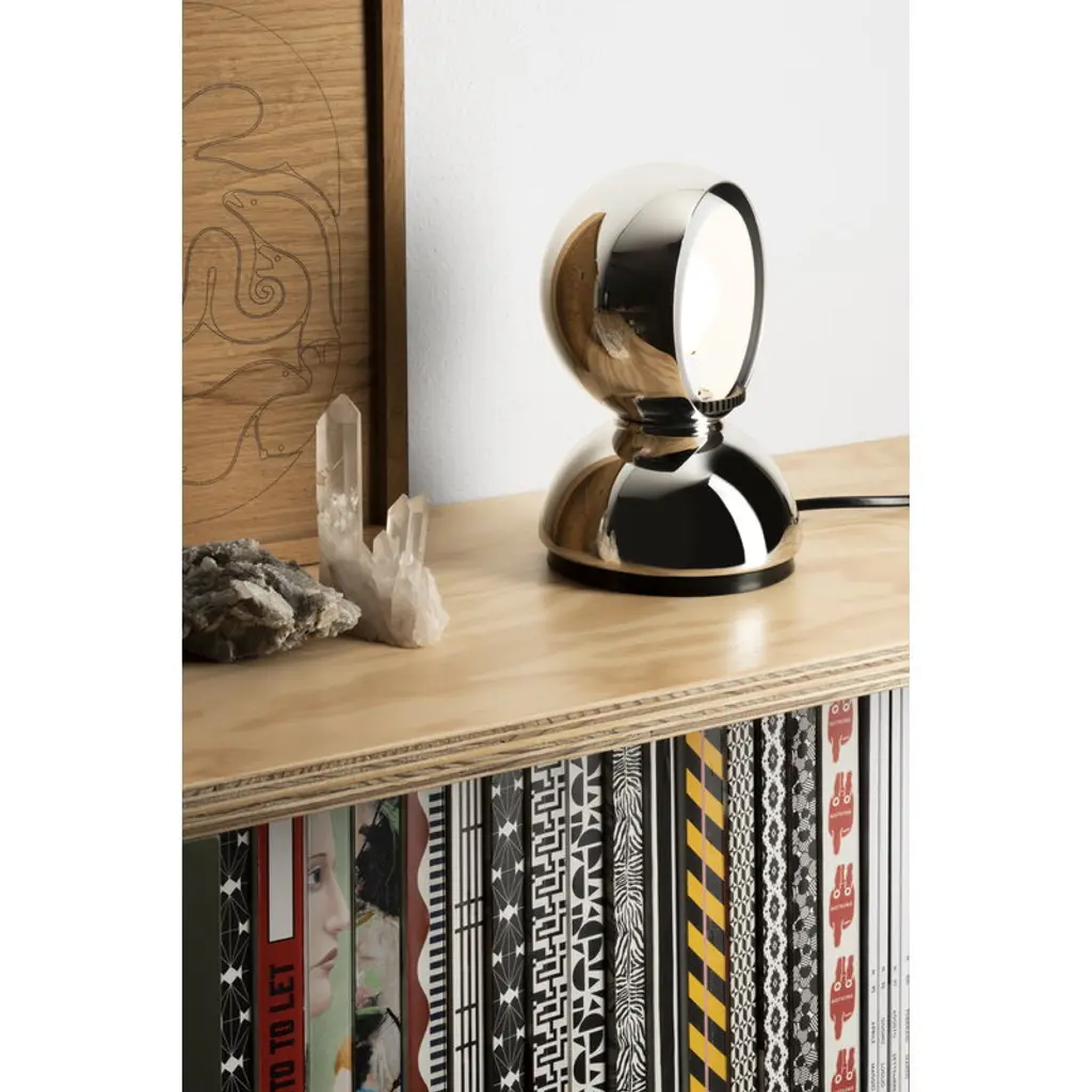 Designed by Vico Magistretti for the Italian lighting company Artemide in 1967, the Eclisse lamp is a delightful combination of round shapes, simple surfaces and 1960s spirit. The soul of the lamp is its mechanical dimmer: a curved, rotating shutter makes it possible to control the direction and intensity of the light. By closing the shutter completely, the lamp creates a beautiful corona – the name Eclisse is an Italian word for eclipse. Eclisse was awarded in 1967 a Compasso d'Oro design award and it influenced the futuristic design of the 1970s. Made of lacquered steel, Eclisse makes a characteristic table lamp for example in the bedroom or the office, and it can also be mounted on the wall.