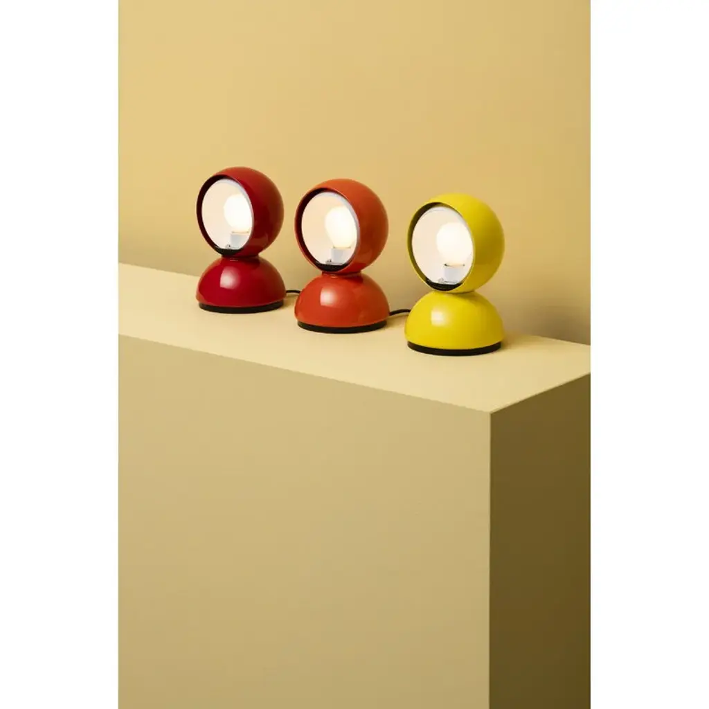 Designed by Vico Magistretti for the Italian lighting company Artemide in 1967, the Eclisse lamp is a delightful combination of round shapes, simple surfaces and 1960s spirit. The soul of the lamp is its mechanical dimmer: a curved, rotating shutter makes it possible to control the direction and intensity of the light. By closing the shutter completely, the lamp creates a beautiful corona – the name Eclisse is an Italian word for eclipse. Eclisse was awarded in 1967 a Compasso d'Oro design award and it influenced the futuristic design of the 1970s. Made of lacquered steel, Eclisse makes a characteristic table lamp for example in the bedroom or the office, and it can also be mounted on the wall.