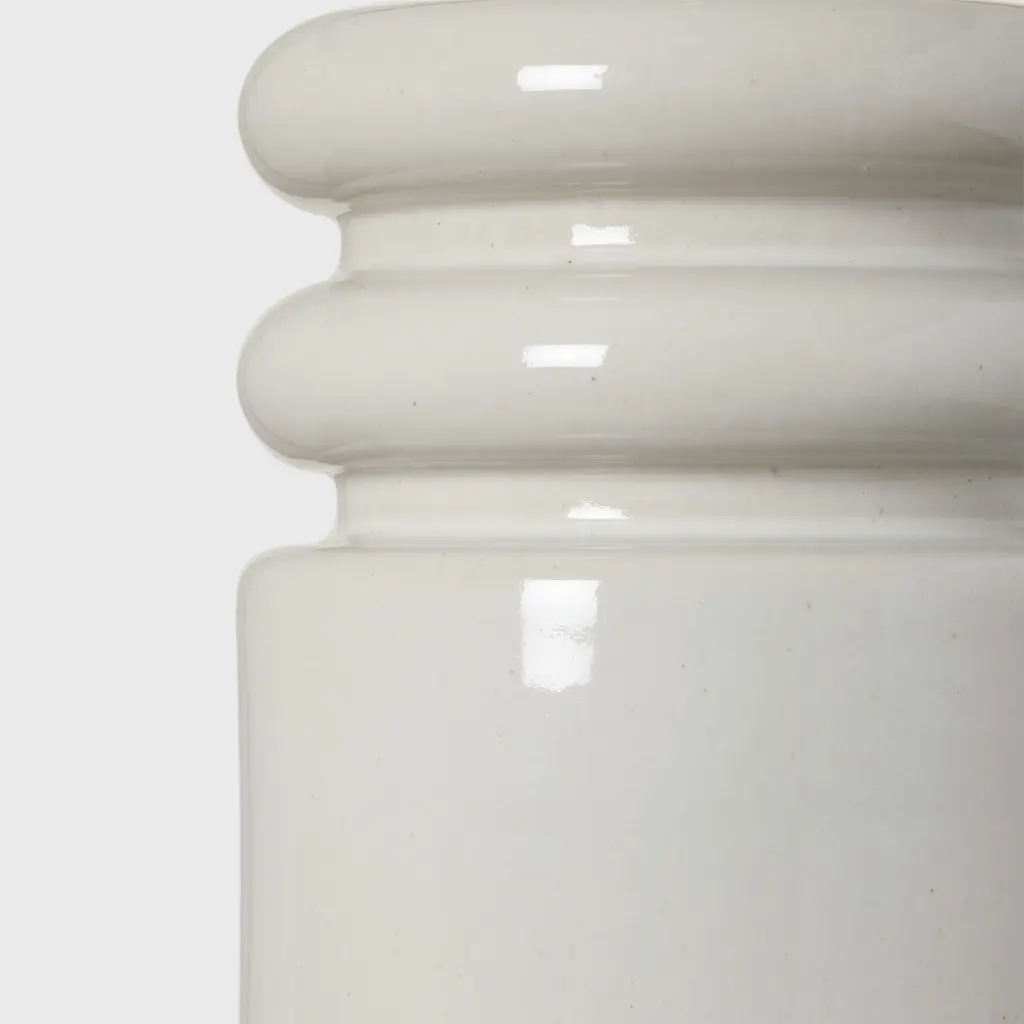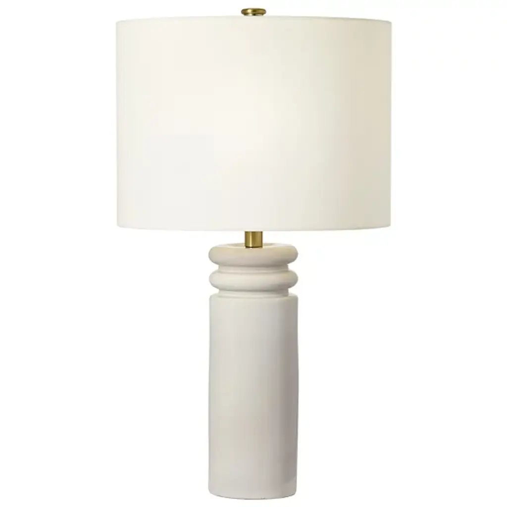 The Feikudo table lamp by Ellen DeGeneres is a stunning tribute to artisanal ceramics, blending handcrafted artistry with timeless design. Its cylindrical base features intricate carved details, brought to life by a crackle glaze that enhances its texture and character. Inspired by California's serene landscapes, the lamp's color palette harmoniously balances soft and bright neutrals, evoking a natural yet refined aesthetic. The Feikudo table lamp effortlessly combines modern sophistication with rustic charm, making it a versatile piece that can stand alone as a focal point on a credenza or desk, or be styled in pairs to frame a bed or sofa with elegance and symmetry.