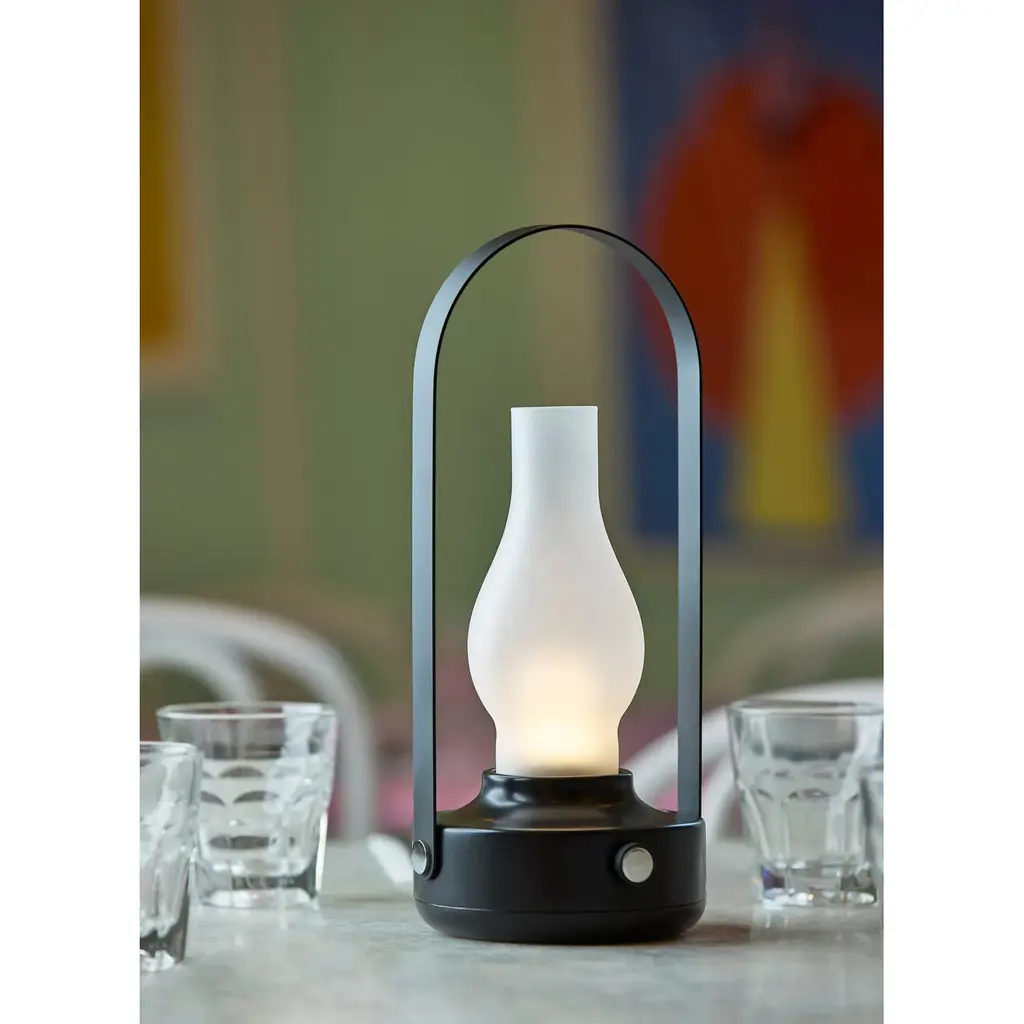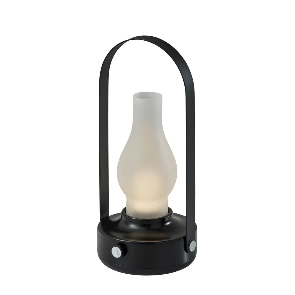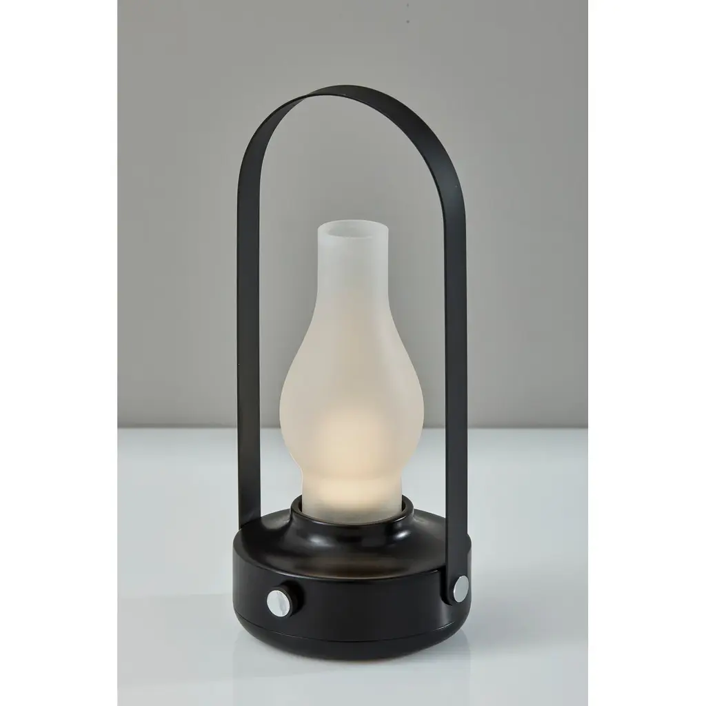 Meet the 6004-01 Eddy Cordless LED Table Lamp, a sleek and versatile lighting solution that combines contemporary design with practical functionality. Its striking black finish adds a modern touch to any space, while the frosted glass teardrop-shaped shade diffuses light beautifully for a soft and ambient glow. Standing at a height of 11.75 inches, it's the perfect size for bedside tables, desks, or outdoor settings. The black metal handle adds a stylish accent and makes it easy to carry from one place to another. Equipped with a 3 Level Touch Dimmer Switch, you can effortlessly adjust the brightness to create the perfect atmosphere for any occasion. Powered by a rechargeable 1.5W LED, this lamp offers cordless convenience, allowing you to place it anywhere without the hassle of cords or outlets. Plus, with an IPX4 location rating for outdoor use, it's designed to withstand the elements, making it suitable for both indoor and outdoor spaces. -Sleek design: Contemporary black finish adds a modern touch to any decor. -Soft illumination: Frosted glass teardrop-shaped shade diffuses light for a gentle and ambient glow. -Portable and versatile: Standing at 11.75 inches tall, perfect for bedside tables, desks, or outdoor settings. -Adjustable brightness: Features a 3 Level Touch Dimmer Switch for personalized lighting control. -Outdoor-ready: IPX4 location rated for outdoor use, ensuring durability and reliability in various environments, making it perfect for both indoor and outdoor applications.