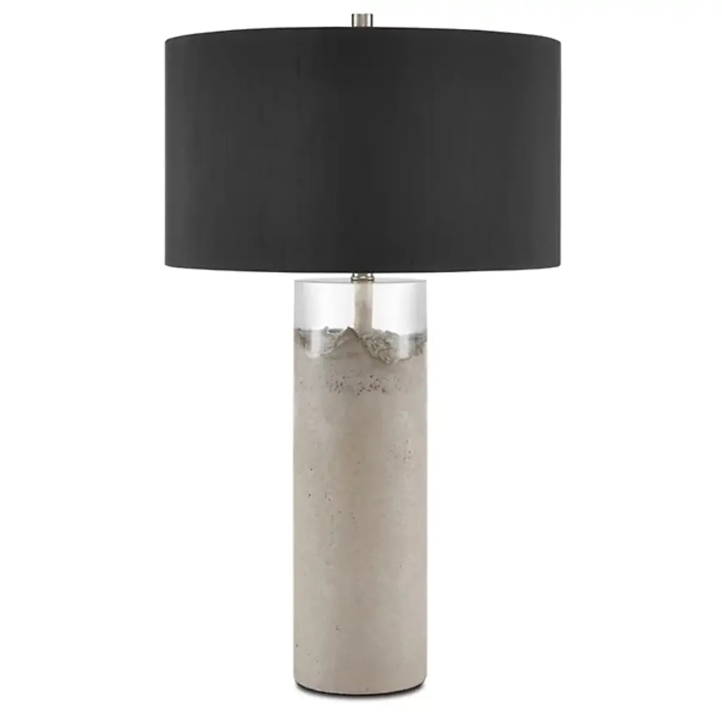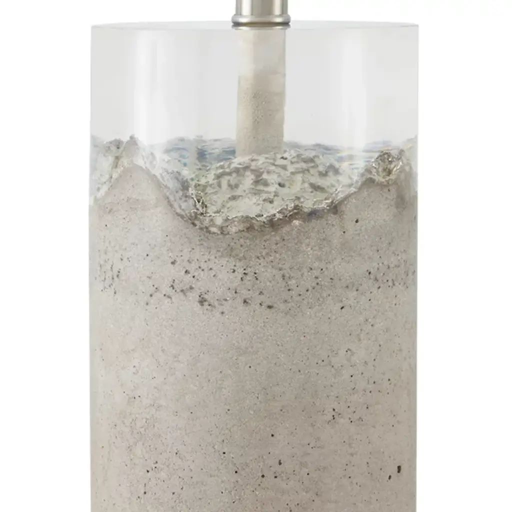Evocative of a glass filled to the brim with soft beach sand. The Edfu Table Lamp from Currey & Company plays with the eyes in an elegant display of textures comprised of composite and concrete materials. The piece pulls one’s attention instantly in the contemporary setting. It complements the refined space with a clear, composite base. The cylinder feels tactile as it contains a concrete pour that shows natural hues and deep texture. The fabric shade adds to the soothing visuals in a glare-stopping shape. Light descends from the shade to highlight the sand-like display while radiating to create a relaxing ambiance.