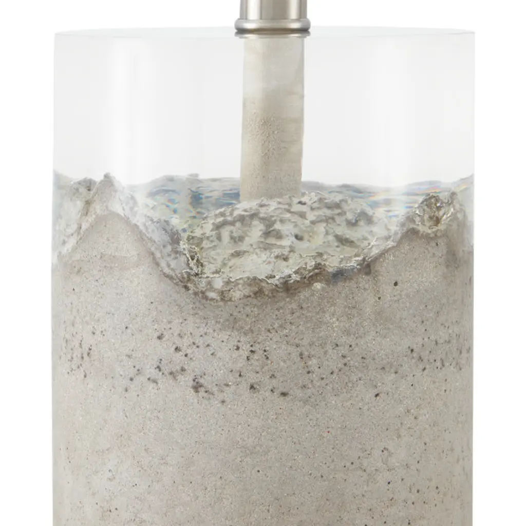 A glance at the Edfu Table Lamp leaves the impression that a clear column has been filled with sand, but this table lamp is made of concrete and composite that has been merged into one single piece. The concrete portion that anchors the lamp has a surface that looks finely aged. This and the fluted delicacy where it joins the clear material strikingly imitate desert-blown sand.