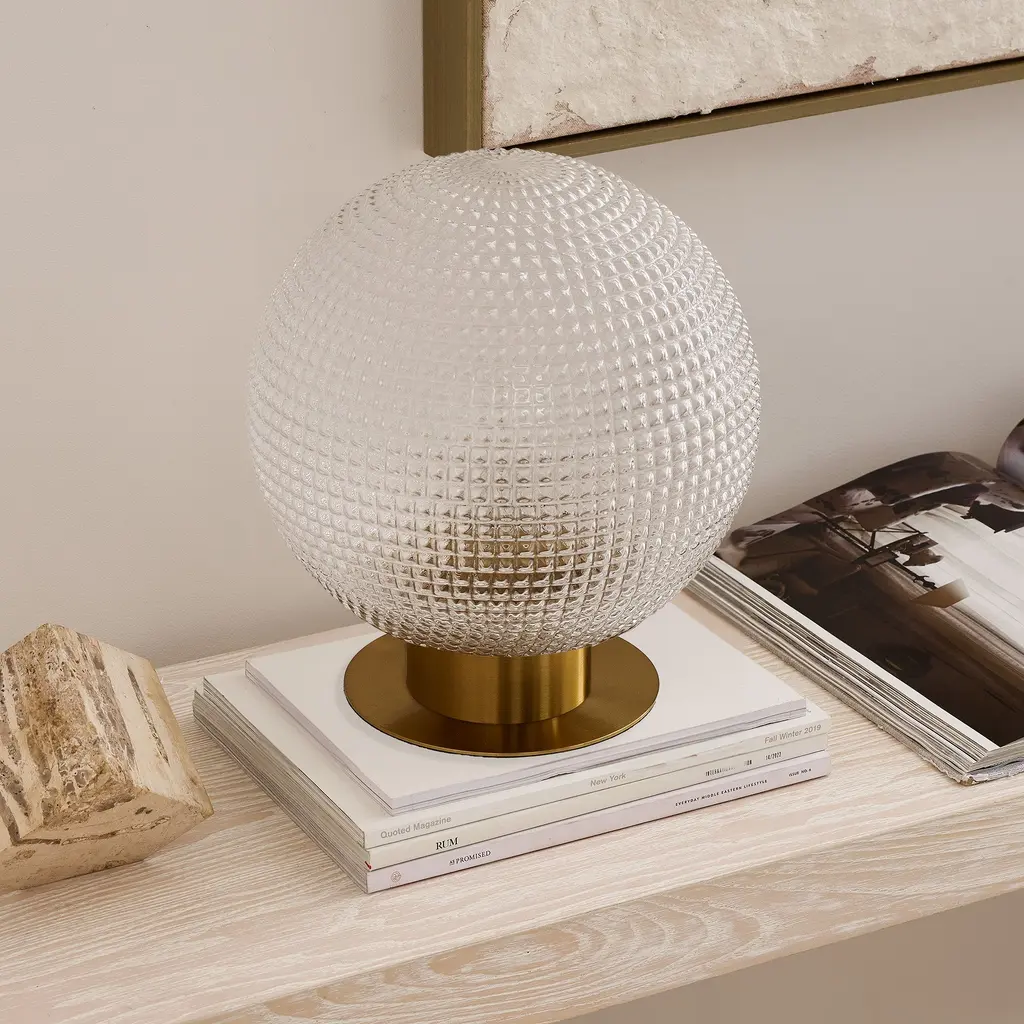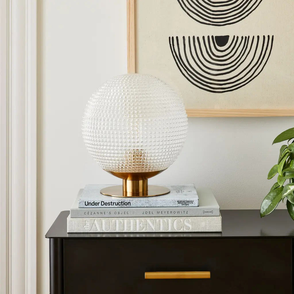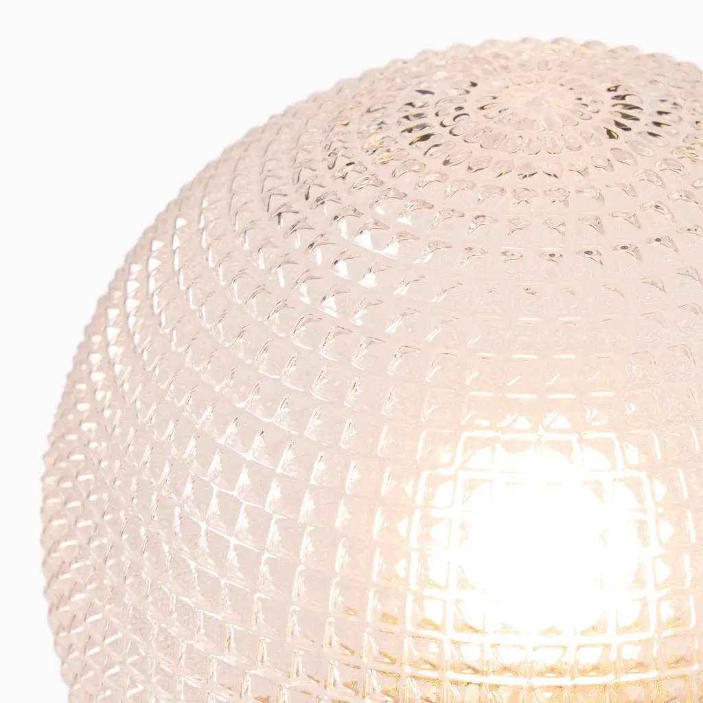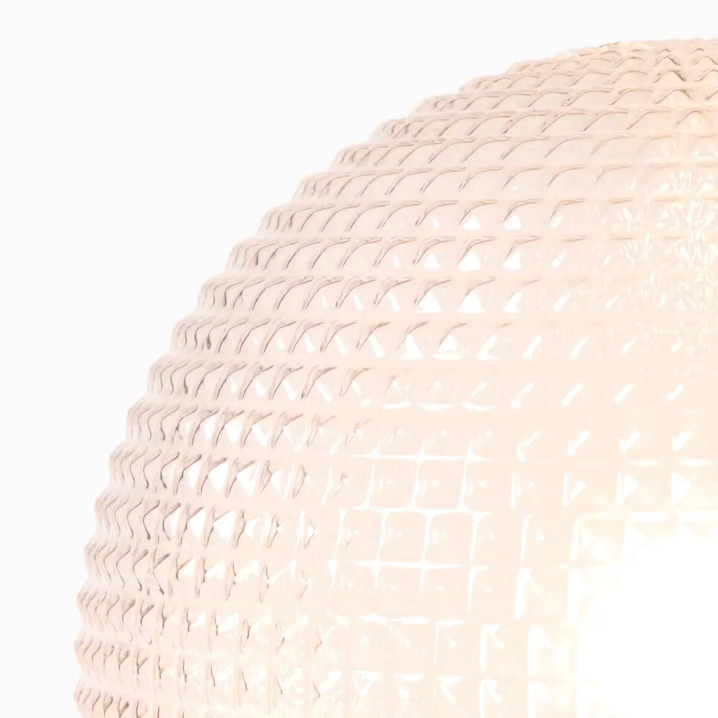 Textured prismatic glass shade is our take on retro light fixtures. Vintage-inspired look adds a touch of glamour to any room. Contract Grade for unmatched durability.