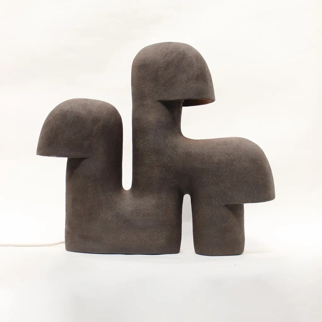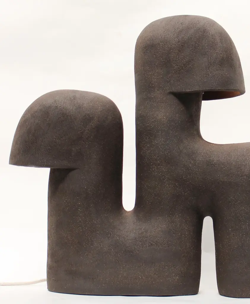 Edifice #35 stoneware lamp by Elisa UbertiDimensions: W 16 x L 61 x H 55 cmMaterials: black stoneware.This product is handmade, dimensions may vary. After fifteen years in fashion, Elisa Uberti decides to take the time to work with these hands and to give birth to new projects.All our lamps can be wired according to each country. If sold to the USA it will be wired for the USA for instance.Designer and artist, in her Roubaix workshop she mainly works with sandstone, her favorite material, which she models to create sculptures, lamps or vases with curved and comforting shapes testifying to an ancestral manual gesture. His works form a particular microcosm, far from standardization, and testify to his artistic sensitivity. A refined universe with multiple inspirations such as mineral and organic nature, nomadism, architecture and the poetry of space linked by the same common thread, respect for passing time and a need for timelessness. His work, on the border between art and design, combines tradition and modernity. She constantly seeks the difficult balance between the rigor of technical constraints and the necessary freedom and spontaneity of the gesture.