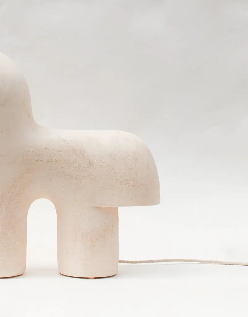 Edifice #46 stoneware lamp by Elisa UbertiUnique Piece.Dimensions: H 45/50 cm.Materials: Stoneware.This product is handmade, dimensions may vary. Please contact us.All our lamps can be wired according to each country. If sold to the USA it will be wired for the USA for instance.After fifteen years in fashion, Elisa Uberti decides to take the time to work with these hands and to give birth to new projects.Designer and artist, in her Roubaix workshop she mainly works with sandstone, her favorite Material, which she models to create sculptures, lamps or vases with curved and comforting shapes testifying to an ancestral manual gesture. His works form a particular microcosm, far from standardization, and testify to his artistic sensitivity. A refined universe with multiple inspirations such as mineral and organic nature, nomadism, architecture and the poetry of space linked by the same common thread, respect for passing time and a need for timelessness. His work, on the border between art and design, combines tradition and modernity. She constantly seeks the difficult balance between the rigor of technical constraints and the necessary freedom and spontaneity of the gesture.