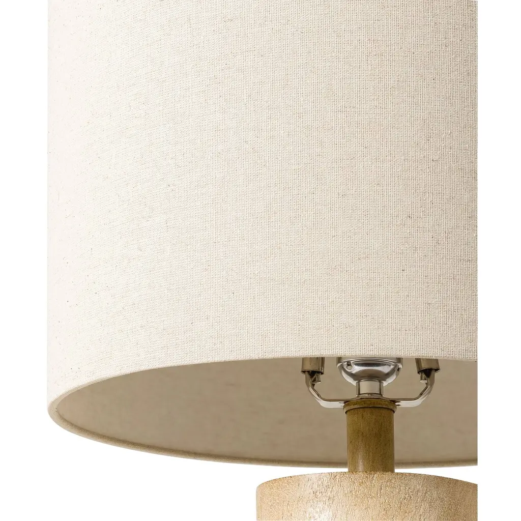 Filled with texture and charm, this table lamp showcases a rotund composition body. A tall linen shade contrasts the portly base for an alluring accent that pairs well with any decor style. Place bedside, couch side, or in your study or home office for a warm glow. This table lamp is UL/CUL certified with a 3-way switch. For optimal product care, wipe clean with a soft cloth.