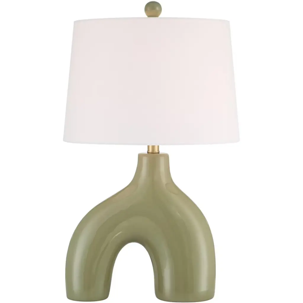 Designed by Christopher Spitzmiller, this sculptural table lamp is the definition of timeless. The linen shade and the golden base and finial beautifully set off the crackled green finish of the ceramic body.