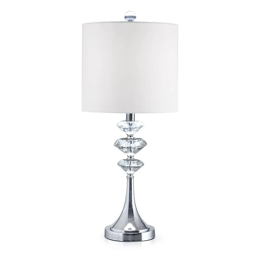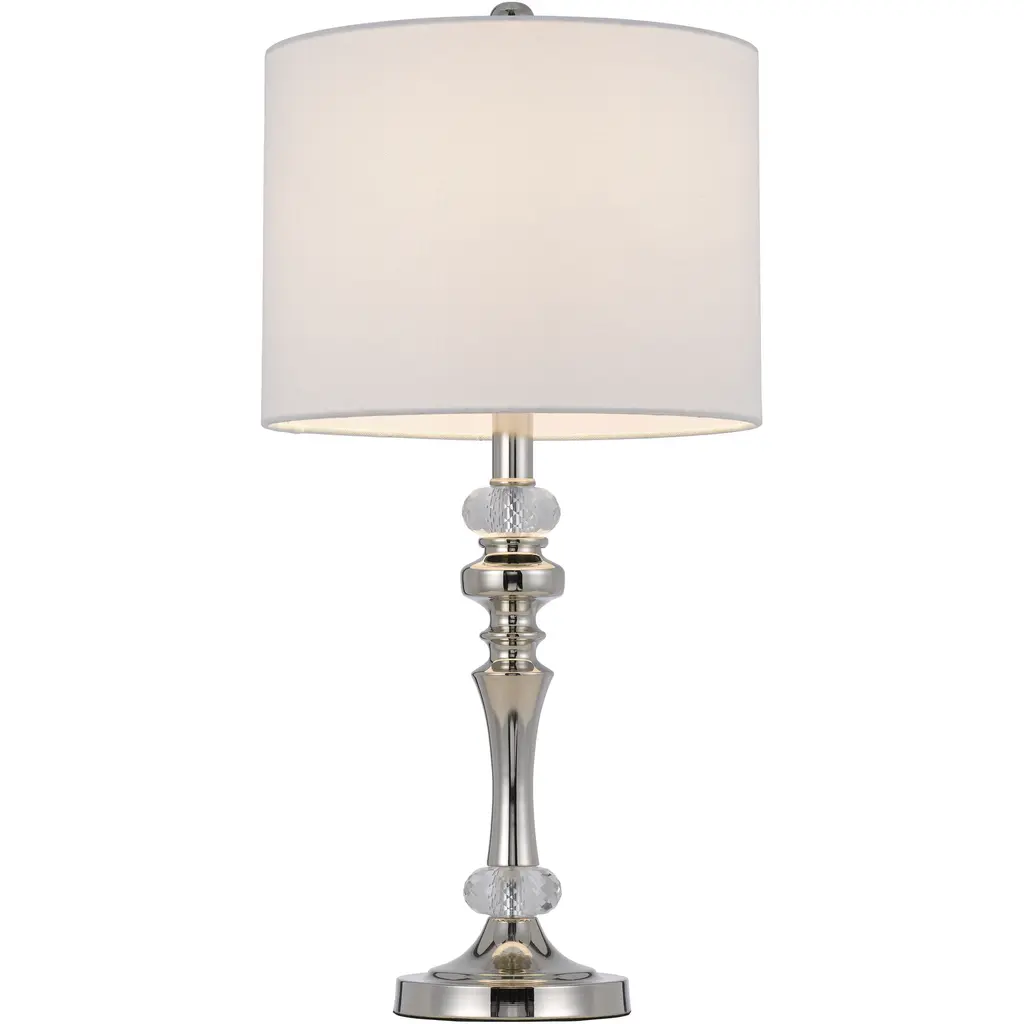 This pair of brushed steel metal and crystal buffet lamps are the perfect addition to any console table or night stand area. Their slim frame makes them suitable for small and cozy rooms. Both lamps ship together in one carton along with matching shades and finials.