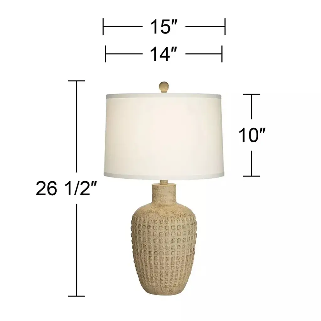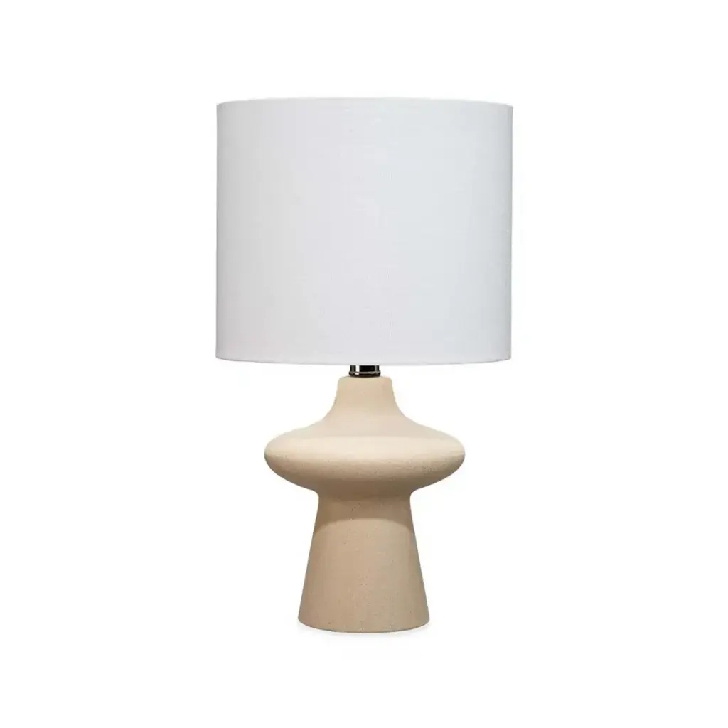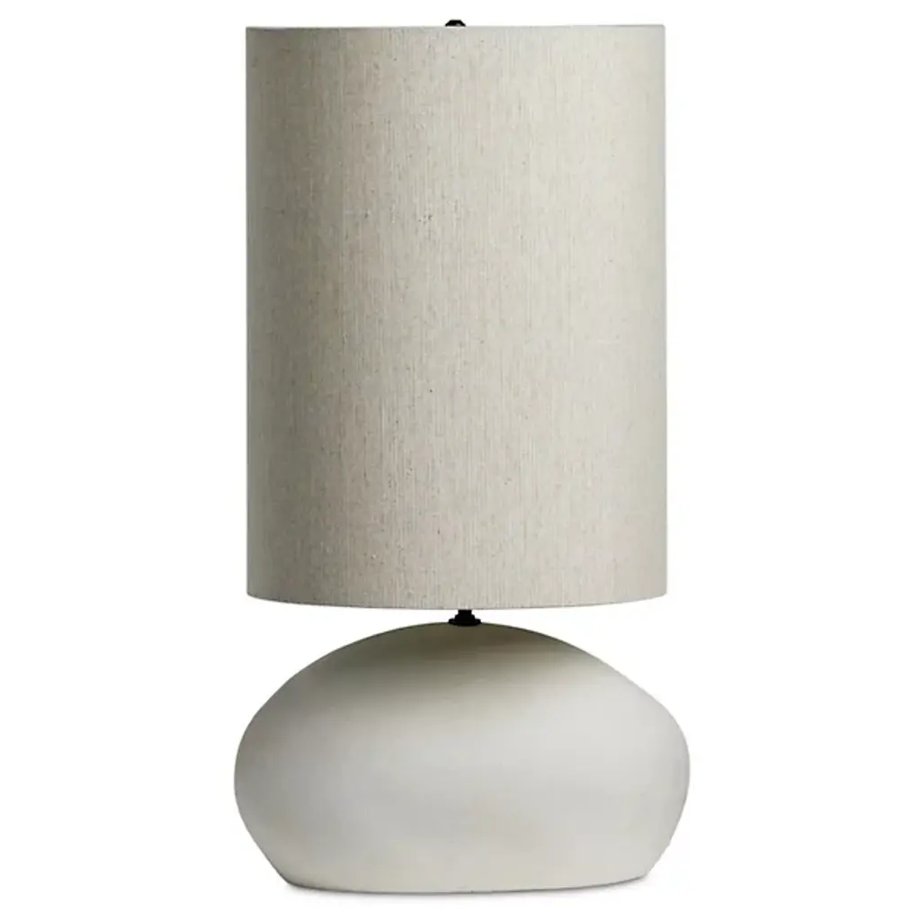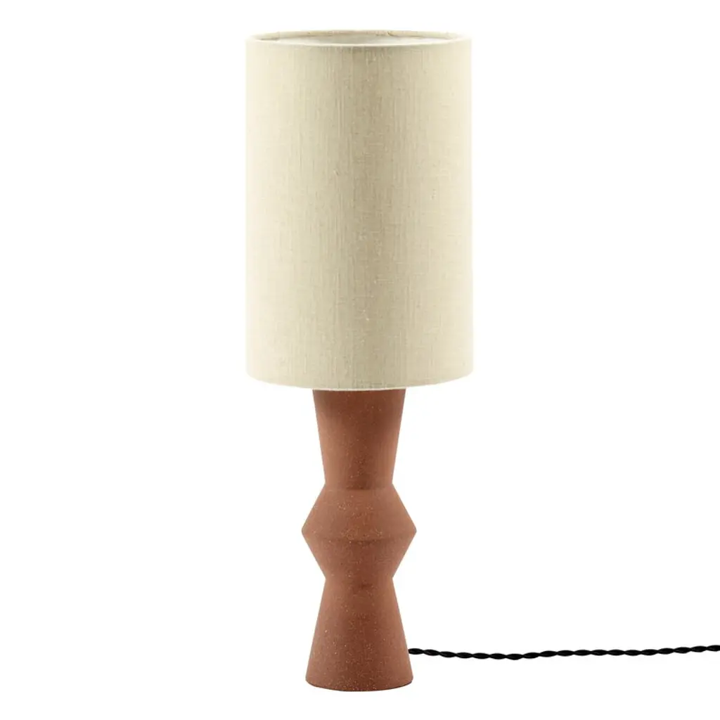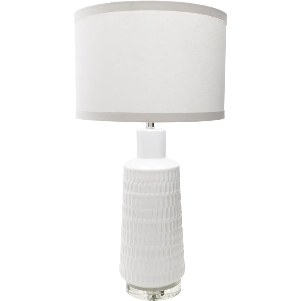 Charmingly off-kilter checks texture our Eino table lamp with an organic pattern and playful feel. Glazed translucent ivory, the cylindrical ceramic base rests upon a subtle pedestal and is topped with a tall linen shade that continues the natural, artisanal look. We especially love placing our exclusive Eino ceramic lamp where its unique surface can be admired.