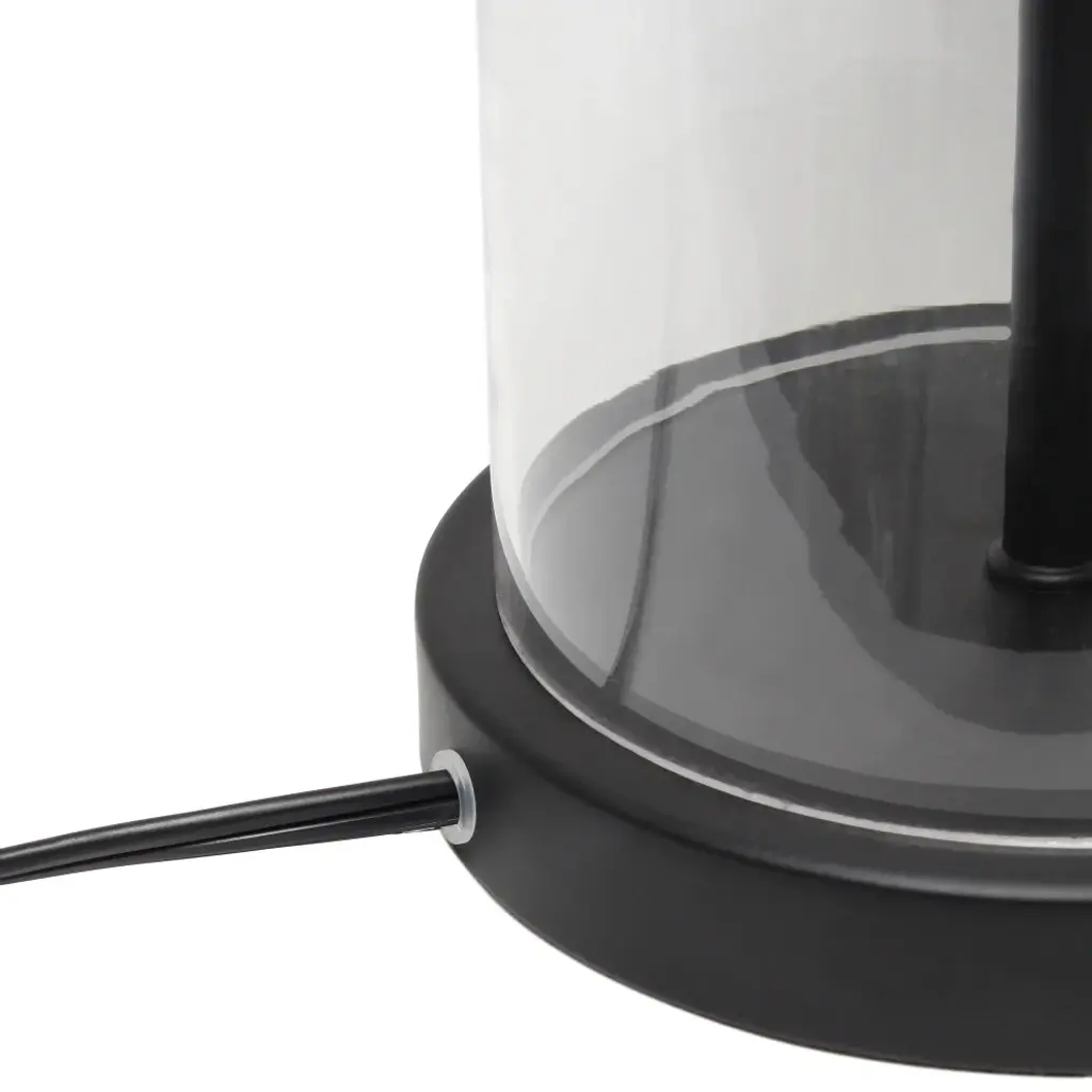 Elegant Designs Enclosed Glass Table Lamp, BlackThis simple, yet sophisticated table lamp showcases a crystal-clear glass column paired with black metal accents and a white fabric drum shade for a clean, elegant look. Illuminate any room in your home with style. Perfect for living room, bedroom, office, or anywhere you need to add a touch of sophistication!Clear glass with black metal accents on baseWhite fabric drum shadeEasily accessible rotary switch located on the socketUses 1 x 100W medium type A base bulb (not included)Available in additional base color optionsLamp measures D: 14" x 28"Finish/Colour :Black/ WhiteBulbs Included :NoBulb Type :Type A19IncandescentShade diameter :14Number of Lights :1Maximum Wattage :100Shade meterial :FabricCord Colour :Blackcord Length :64Product Dimension(L x W x H) :14 x 14 x 28Base Dimensions :L:6.5 x W:6.5 x H:20.75
