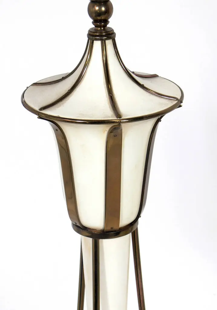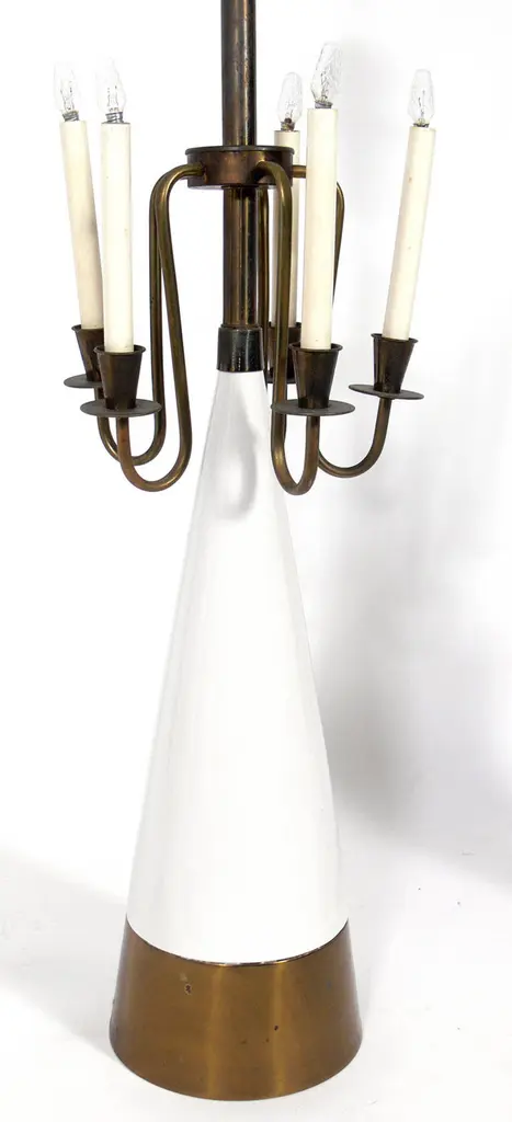 Elegant White And Brass Lamps In The Manner Of Tommi Parzinger