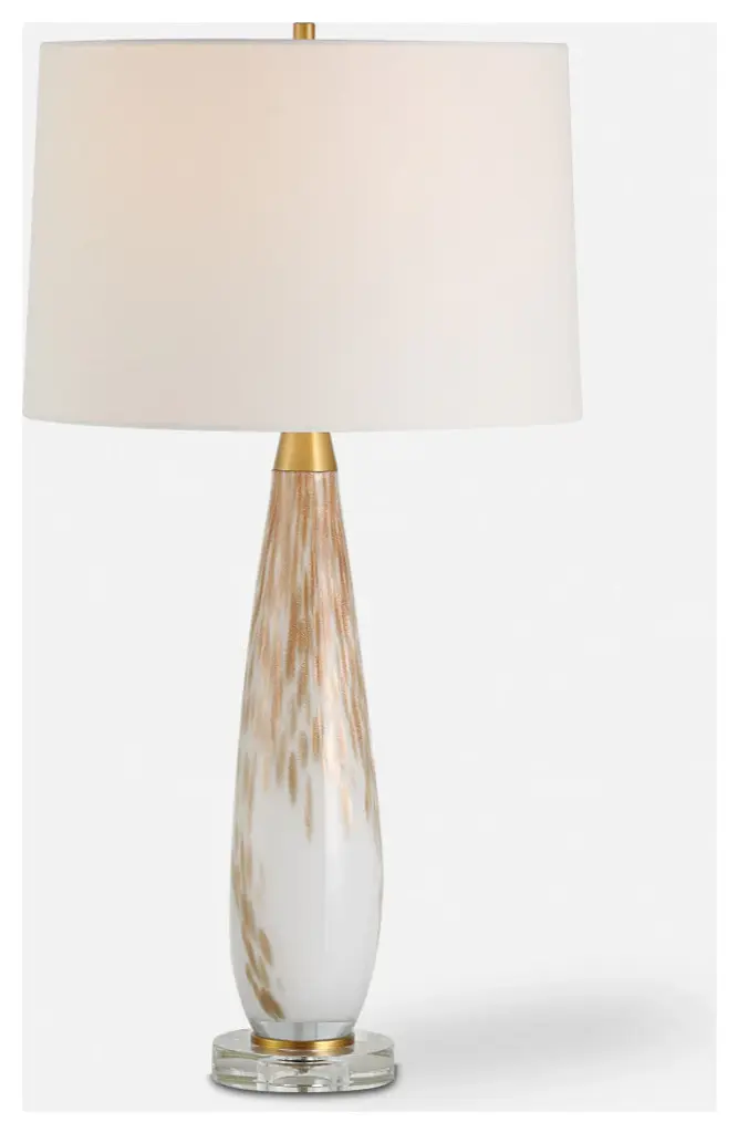 Elegant White Art Glass Mottled Metallic Gold Table Lamp 29 In Contemporary