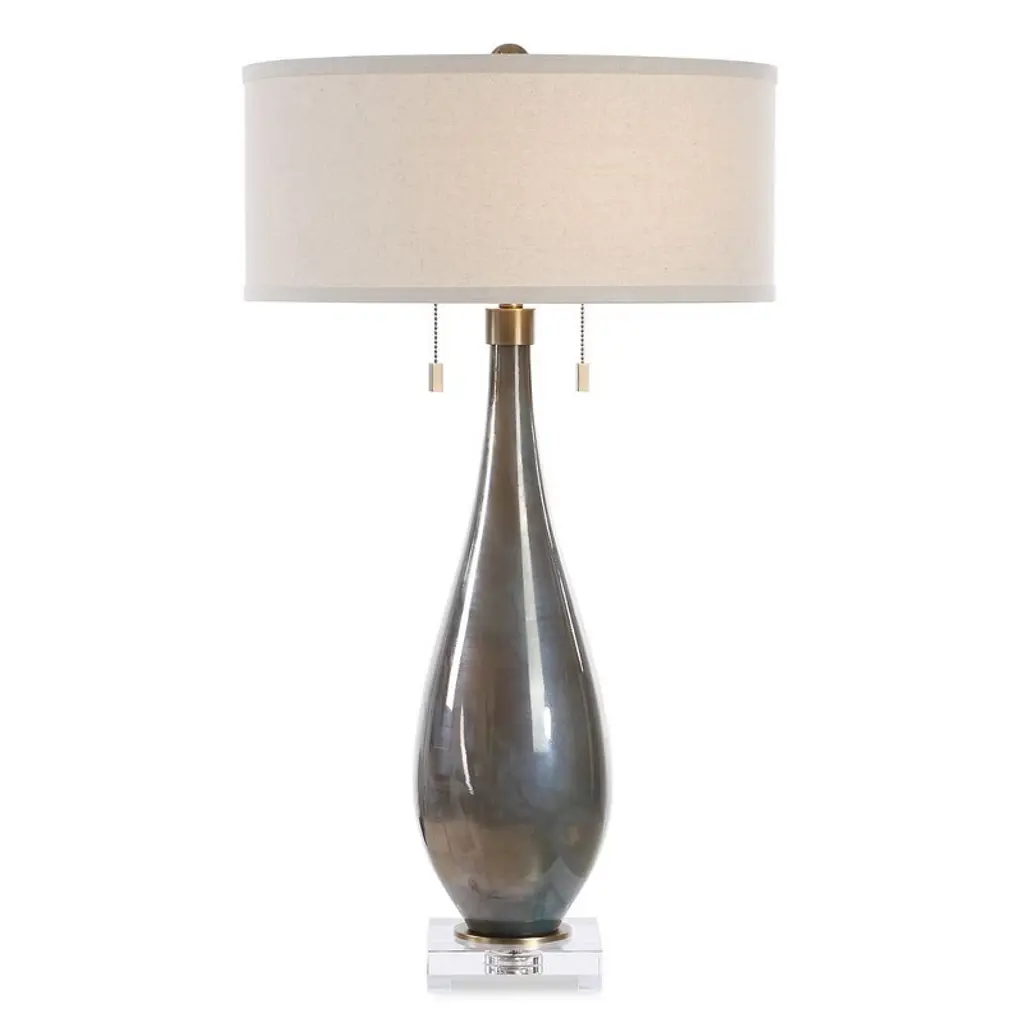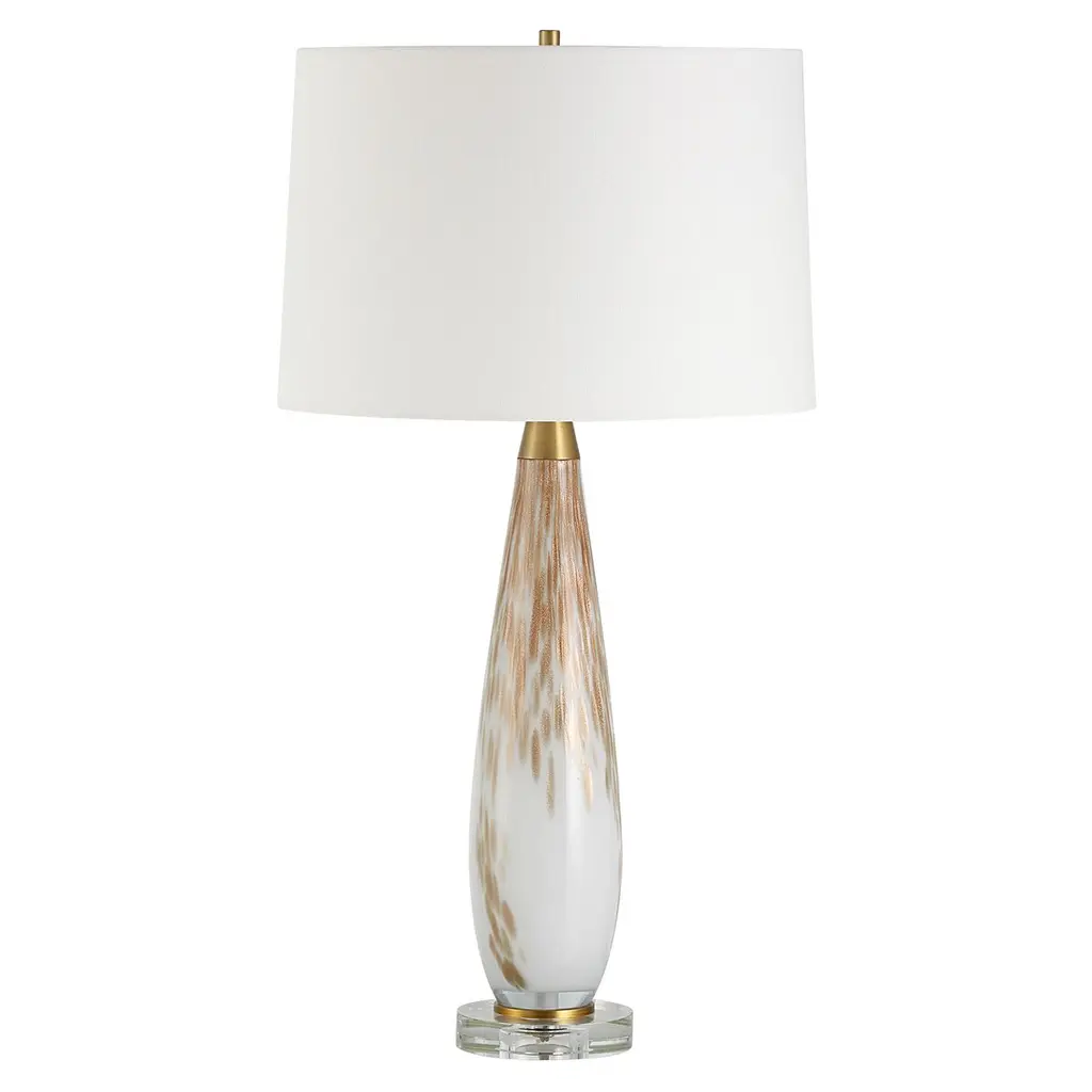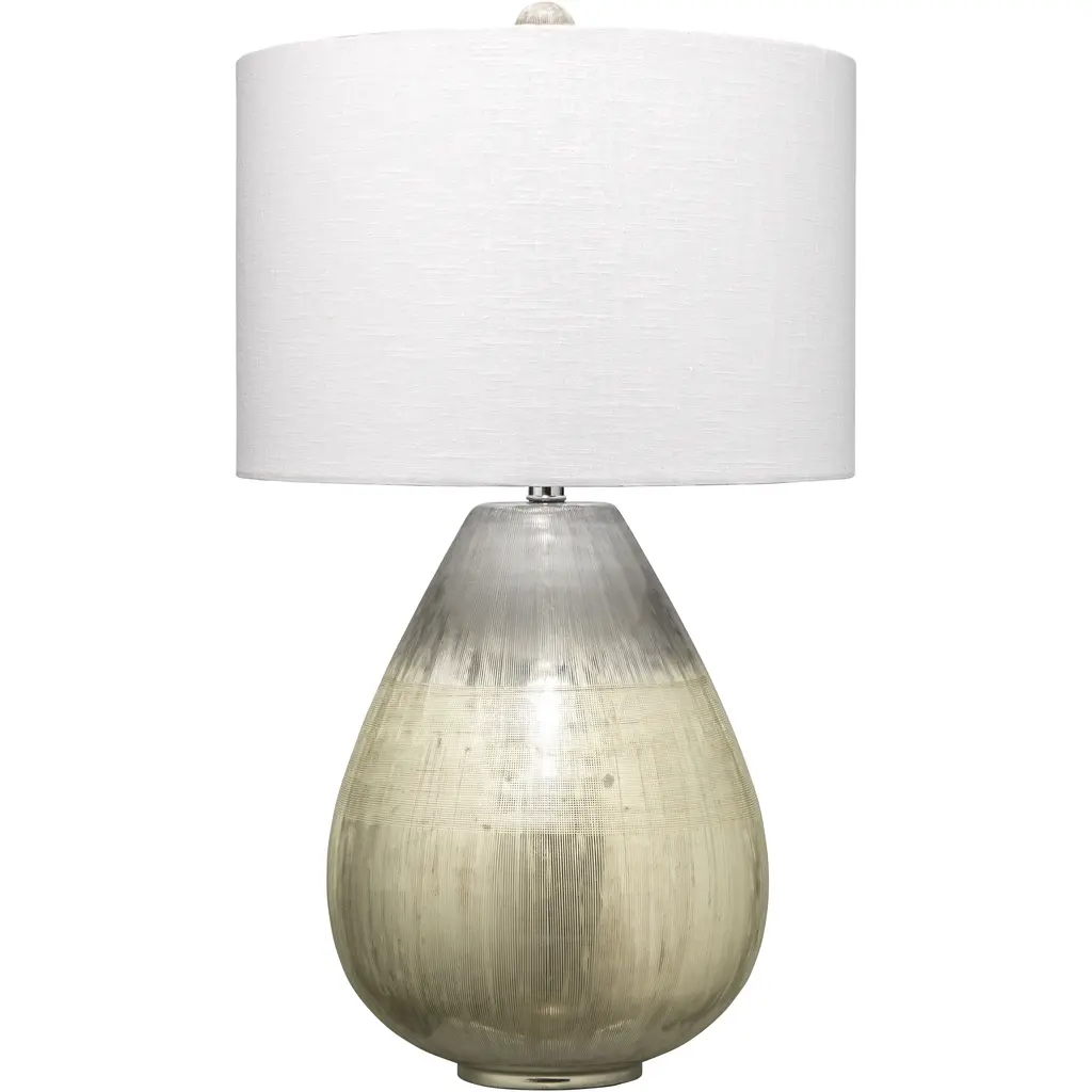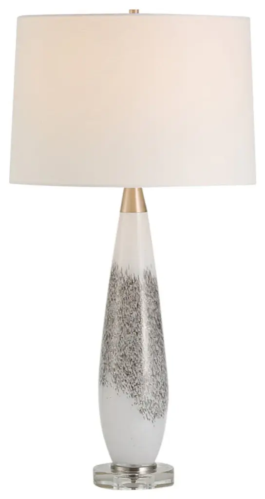 Elegant White Art Glass Mottled Metallic Silver Table Lamp 29 In Contemporary