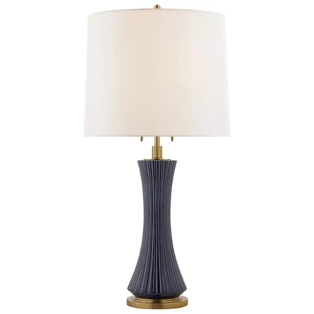 A sophisticated solution to setting a relaxing tone. The Elena Table Lamp by Visual Comfort Signature, formerly known as Visual Comfort, brings an aura of warmth and relaxation to any room with its upscale appointments and calming illumination. Its beautifully-crafted ceramic base is defined by sleek lines and curves, while a variety of elegant finishes makes it easy to coordinate with a wide range of décor color schemes. Topped with a silky linen shade, this lamp exudes exquisiteness.