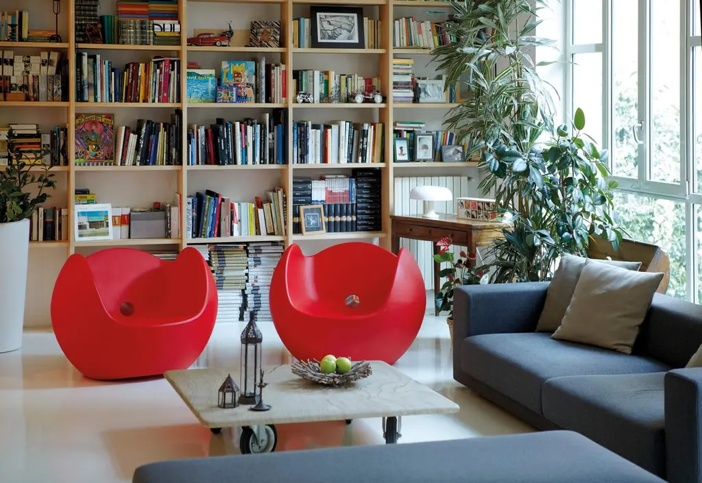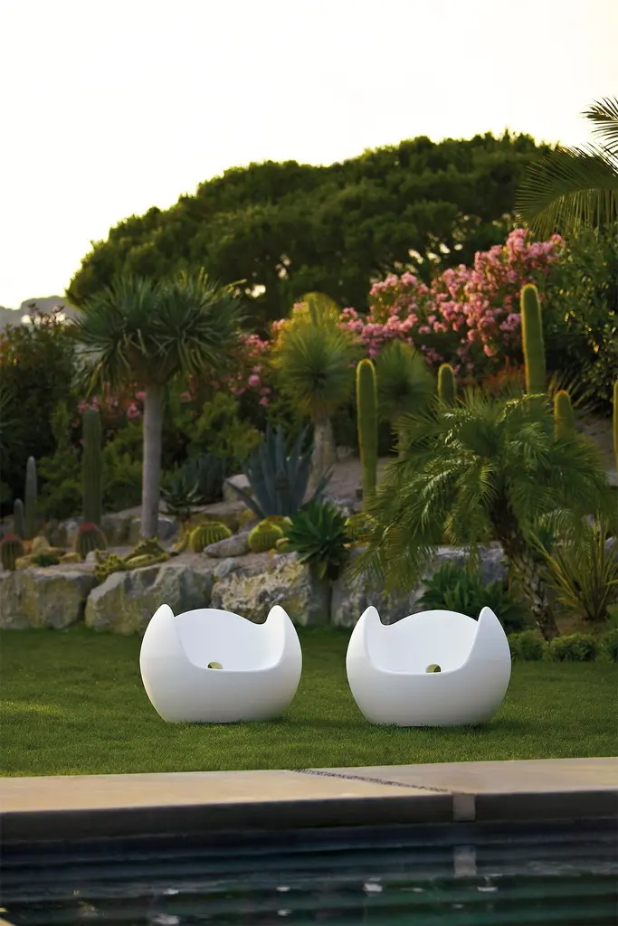 Elephant Grey Blos Rocking Armchair by Karim RashidDimensions: D 85 x W 100 x H 75 cm. Seat Height: 34 cm.Materials: Polyethylene.Weight: 18 kg.Available in different color options. This product is suitable for indoor and outdoor use. Please contact us. Blos is a low armchair, designed by Karim Rashid for Slide. Blos has got round and wrapping shape, and it is ideal for both indoor and outdoor settings: its colorful and funny design creates an unusual corner in gardens and living rooms. Thanks to its peculiarity, Blos is suitable for gameful and contemporary furniture in domestic areas, halls of hotels, restaurants and lounge bars. Blos is a low armchair made of polyethylene, with the technology of rotational molding. It is available in standard models but also luminous models.Our stories happen in places precious to us. SLIDE was born from the desire to produce furniture and light to create the perfect atmosphere that highlights emotions.Design is inspiration, surprise, joy. It's the amazement of seeing something unique for the first time. It's creating spaces to feel good and live surrounded by beauty. It means giving a personal imprint to indoor and outdoor spaces. It means choosing your ideal element that is the perfect setting for emotions and experiences, which become indelible memories. The founder Giò Colonna Romano knows this well, combining his fervent imagination with thirty years of know-how in the processing of plastic resins, giving birth to SLIDE in 2002. The first note of amazement is the luminous furniture, which immediately became a must have in the world of events. Since 2015, his son Marco Colonna Romano has taken over the reins of the company, with the same desire to grow and innovate as his father. Thanks to a new panache and the team of young people it surrounds itself with, SLIDE becomes a beloved company for outdoor furniture: new shapes, materials and tactile textures have won the hearts and ideas of architects and interior designers around the world. SLIDE has thus created complete collections and furnishings, with new shapes, whose lines arise from collaboration with internationally renowned designers of the caliber of Alessandro Mendini, Paola Navone, Stefano Giovannoni, Fabio Novembre, Marcel Wanders, Karim Rashid, Marc Sadler, Francesco Favaretto and Marcantonio.New materials were chosen and inserted, initially soft and rigid polyurethane, and then comfortable cushions, waterproof fabrics, tactile textures ideal for completing the polyethylene furnishings with taste and class. But SLIDE does not forget its first essence, lighting: in recent years it has developed a line of much more technical lamps for large areas, essential in shape but with great visual impact. For the first time, Slide has managed to give an artisanal twist to an industrial process: to meet the increasingly high demands of living, the production creates non-replicable shades, in which every small imperfection enhances the industrial process and makes each piece unique . Because Slide's strength has always been the careful reading of the market, the creation of something that didn't exist and which then became necessary: here Slide continues its production in Buccinasco, on the outskirts of Milan, but its name and its products reach more than 130 countries around the world.