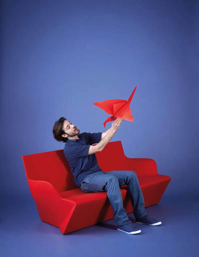 Elephant Grey Kami Yon Sofa by Marc SadlerDimensions: D 75 x W 174 x H 70 cm. Seat Height: 35 cm.Materials: Polyethylene.Weight: 33 kg.Available in different color options. This product is suitable for indoor and outdoor use. Also available in a lighted and a lacquered version, with glossy or matte finishes. An additional cushion made of rubber filling with an outdoor waterproof acrylic cover (removable) is available. Prices may vary. Please contact us. Kami Yon is a love sofa inspired by the ancient Japanese art of Origami, as the whole Kami collection. Kami Yon is comfortable and cozy, as well as elegant and refined, thanks to the essence of its design and the folders that characterized its structure. The love sofa Kami Yon is made in polyethylene with the technology of rotational moulding and it could become more comfortable by adding a waterproof fabric cushion that completes the seat. It is available in standard, lacquered and luminous versions.Our stories happen in places precious to us. SLIDE was born from the desire to produce furniture and light to create the perfect atmosphere that highlights emotions.Design is inspiration, surprise, joy. It's the amazement of seeing something unique for the first time. It's creating spaces to feel good and live surrounded by beauty. It means giving a personal imprint to indoor and outdoor spaces. It means choosing your ideal element that is the perfect setting for emotions and experiences, which become indelible memories. The founder Giò Colonna Romano knows this well, combining his fervent imagination with thirty years of know-how in the processing of plastic resins, giving birth to SLIDE in 2002. The first note of amazement is the luminous furniture, which immediately became a must have in the world of events. Since 2015, his son Marco Colonna Romano has taken over the reins of the company, with the same desire to grow and innovate as his father. Thanks to a new panache and the team of young people it surrounds itself with, SLIDE becomes a beloved company for outdoor furniture: new shapes, materials and tactile textures have won the hearts and ideas of architects and interior designers around the world. SLIDE has thus created complete collections and furnishings, with new shapes, whose lines arise from collaboration with internationally renowned designers of the caliber of Alessandro Mendini, Paola Navone, Stefano Giovannoni, Fabio Novembre, Marcel Wanders, Karim Rashid, Marc Sadler, Francesco Favaretto and Marcantonio.New materials were chosen and inserted, initially soft and rigid polyurethane, and then comfortable cushions, waterproof fabrics, tactile textures ideal for completing the polyethylene furnishings with taste and class. But SLIDE does not forget its first essence, lighting: in recent years it has developed a line of much more technical lamps for large areas, essential in shape but with great visual impact. For the first time, Slide has managed to give an artisanal twist to an industrial process: to meet the increasingly high demands of living, the production creates non-replicable shades, in which every small imperfection enhances the industrial process and makes each piece unique . Because Slide's strength has always been the careful reading of the market, the creation of something that didn't exist and which then became necessary: here Slide continues its production in Buccinasco, on the outskirts of Milan, but its name and its products reach more than 130 countries around the world.