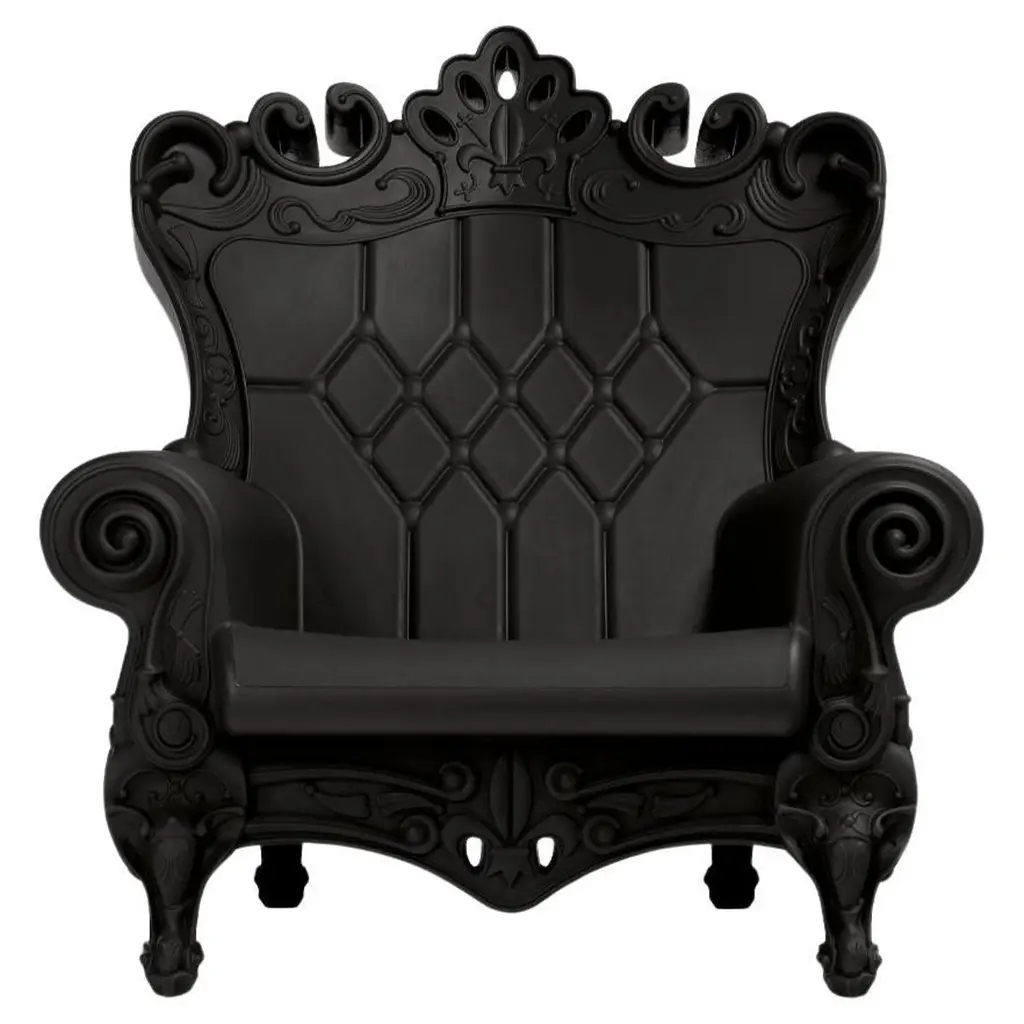 Elephant Grey Queen Of Love Armchair by Moro, PigattiDimensions: D 98 x W 103,5 x H 112,5 cm. SH: 38 cm.Materials: Polyethylene.Available in different color and finish options. This product is suitable for indoor and outdoor use. Please contact us.Our stories happen in places precious to us. SLIDE was born from the desire to produce furniture and light to create the perfect atmosphere that highlights emotions.Design is inspiration, surprise, joy. It's the amazement of seeing something unique for the first time. It's creating spaces to feel good and live surrounded by beauty. It means giving a personal imprint to indoor and outdoor spaces. It means choosing your ideal element that is the perfect setting for emotions and experiences, which become indelible memories. The founder Giò Colonna Romano knows this well, combining his fervent imagination with thirty years of know-how in the processing of plastic resins, giving birth to SLIDE in 2002. The first note of amazement is the luminous furniture, which immediately became a must have in the world of events. Since 2015, his son Marco Colonna Romano has taken over the reins of the company, with the same desire to grow and innovate as his father. Thanks to a new panache and the team of young people it surrounds itself with, SLIDE becomes a beloved company for outdoor furniture: new shapes, materials and tactile textures have won the hearts and ideas of architects and interior designers around the world. SLIDE has thus created complete collections and furnishings, with new shapes, whose lines arise from collaboration with internationally renowned designers of the caliber of Alessandro Mendini, Paola Navone, Stefano Giovannoni, Fabio Novembre, Marcel Wanders, Karim Rashid, Marc Sadler, Francesco Favaretto and Marcantonio.New materials were chosen and inserted, initially soft and rigid polyurethane, and then comfortable cushions, waterproof fabrics, tactile textures ideal for completing the polyethylene furnishings with taste and class. But SLIDE does not forget its first essence, lighting: in recent years it has developed a line of much more technical lamps for large areas, essential in shape but with great visual impact. For the first time, Slide has managed to give an artisanal twist to an industrial process: to meet the increasingly high demands of living, the production creates non-replicable shades, in which every small imperfection enhances the industrial process and makes each piece unique . Because Slide's strength has always been the careful reading of the market, the creation of something that didn't exist and which then became necessary: here Slide continues its production in Buccinasco, on the outskirts of Milan, but its name and its products reach more than 130 countries around the world.