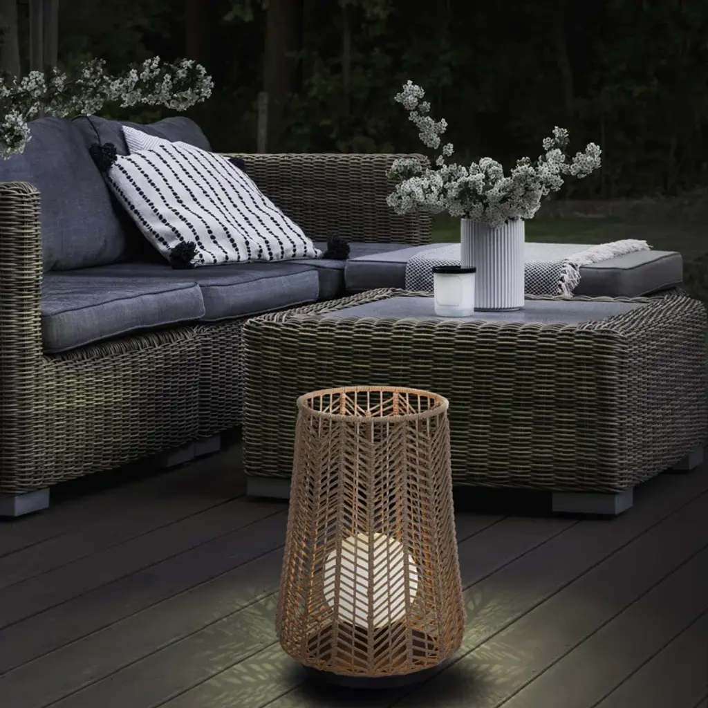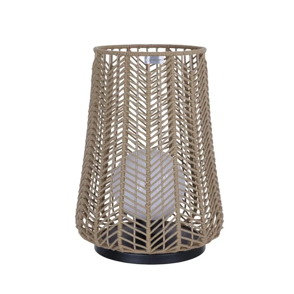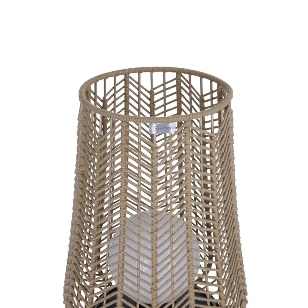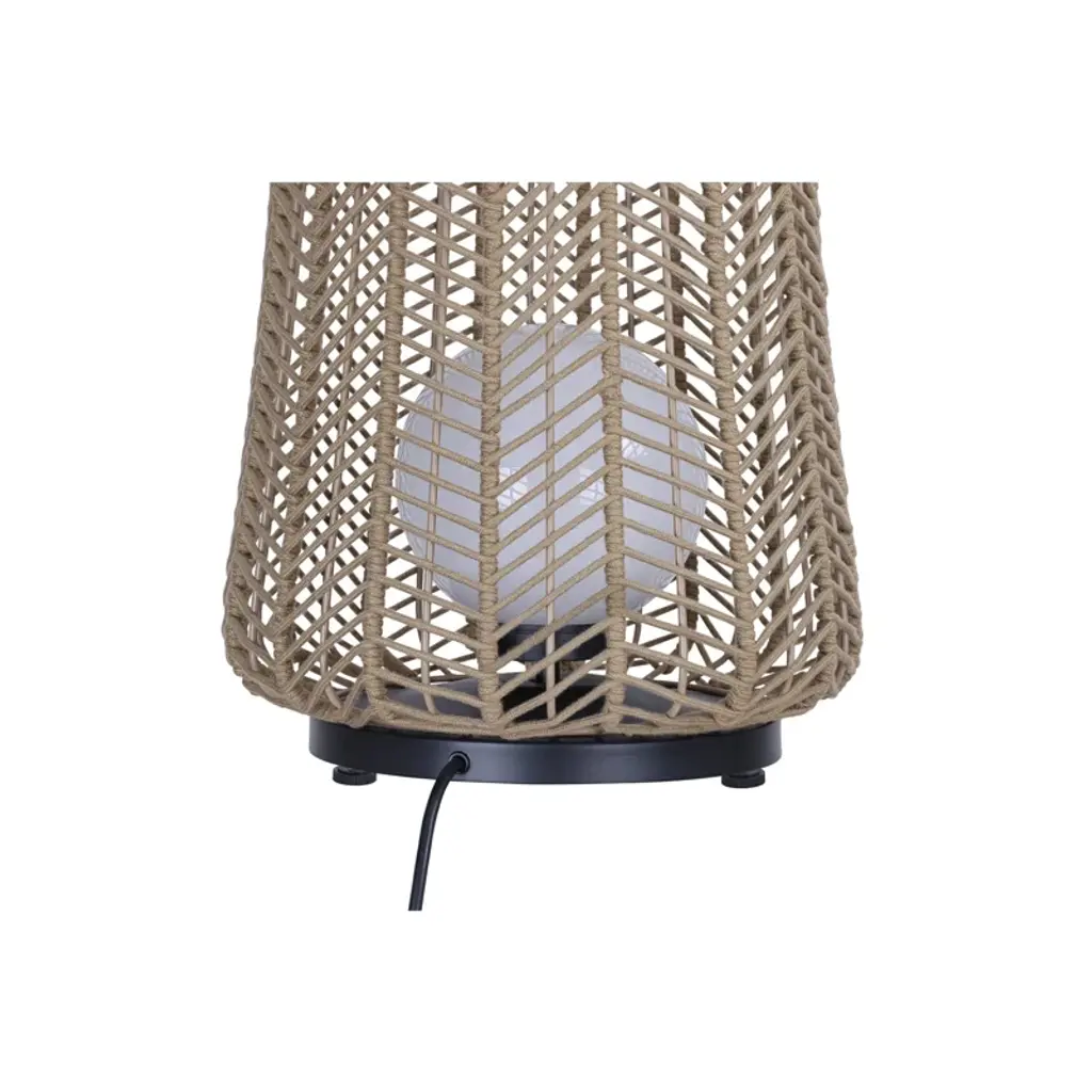 The Elice 22-Inch Outdoor Portable Table Lamp is an elegant yet practical lighting solution designed for outdoor spaces. Featuring a stylish matte black finish with brown and khaki rope accents, this lamp brings a touch of warmth and sophistication to your patio, garden, or balcony. With its IP44 wet rating, it is built to withstand the elements, making it a reliable choice for year-round outdoor use. The portable design allows for easy relocation, providing versatile lighting that enhances the ambiance of your outdoor areas with ease and style.