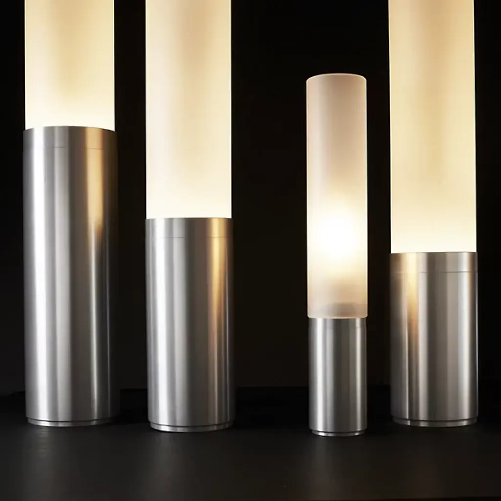 Multi-purpose lamp pays tribute to classic industrial forms. Create the desired mood in a wide range of settings using the Elise Table Lamp by Pablo Designs. Shaped like a towering beacon of light, it boasts a cylindrical profile made of frosted acrylic that provides perfectly diffused, glare-free illumination. Its refined profile includes a machined aluminum base that conceals a light source and an in-line rotary dimmer for full range dimming that allows you to set the perfect ambiance.