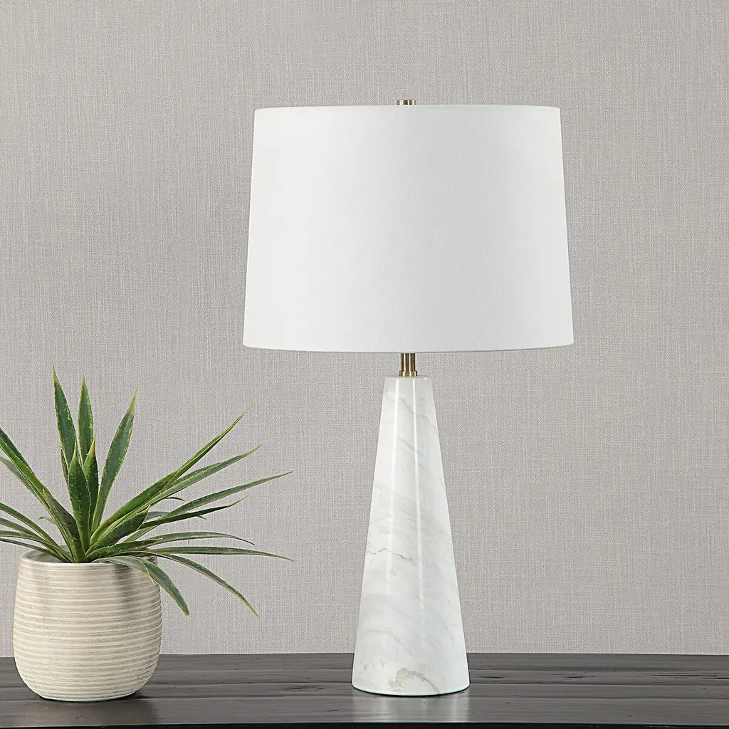 Experience an elegant and timeless addition to your home with the Elix 25" Tall Table Lamp. This stunning lamp boasts an impeccable design that exudes luxury and sophistication. The sleek finish brings a touch of glamour, while the tapered shade offers a timeless elegance. Constructed with a sturdy cord for lasting performance and a clean design, this lamp connects seamlessly with standard E26 sockets and supports bulbs up to 100W, ensuring compatibility with a wide range of lighting options.