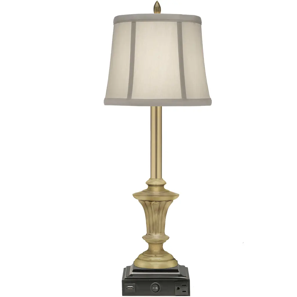 30" Rust & Satin Nickel Table Lamp w/ USB and outlet
