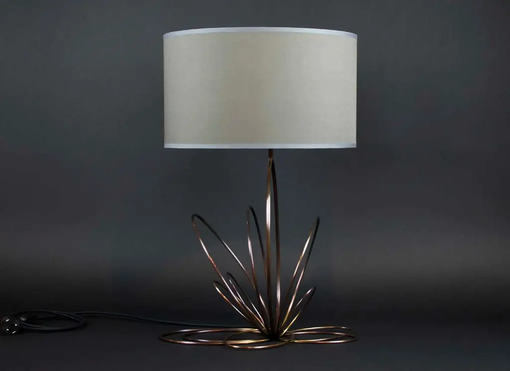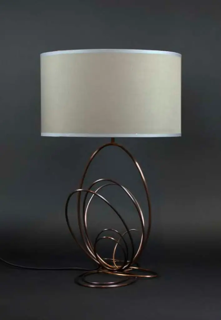 Ellipse 2 Table Lamp by Atelier DemichelisDimensions: W 41 x D 43 x H 63 cmMaterials: Patinated Brass, Grey Fabric ShadeLaura DemichelisLaura was born & brought up in Provence, in the south of France.Trained at the École Boulle in Paris, she obtained her Diploma in Arts & Crafts, specialising with work in bronze.Her Diploma piece, the ‘Dérive’, won her the top national prize in the competition which the Riboud Foundation sponsors at the National Institute of Arts & Crafts (Inma); & the piece has been frequently exhibited.After several years’ work with the designer Van Der Straeten in his atelier in Paris, she spent a year in Asia, in particular studying ancient bronze-casting techniques in Vietnam.Her creativity was hugely enriched by her familiarisation with precious traditional know-how.In 2014, she settled in Berlin, where for 2 years she worked with the designer Stefan Leo & was introduced to different techniques & new materials, like leather, parchment, glass, thus adding to her design repertoire.In 2016, she set up on her own in the centre of Toulouse: Atelier Demichelis, where she designs & makes contemporary lighting and other furnishings & fittings in bronze.All her creations are hand-made & signed, either one-off or in a short numbered series.Laura draws her inspiration from her travels, but also from nature & daily life — so long as there is a story to tell.All our lamps can be wired according to each country. If sold to the USA it will be wired for the USA for instance.