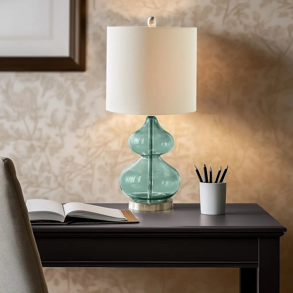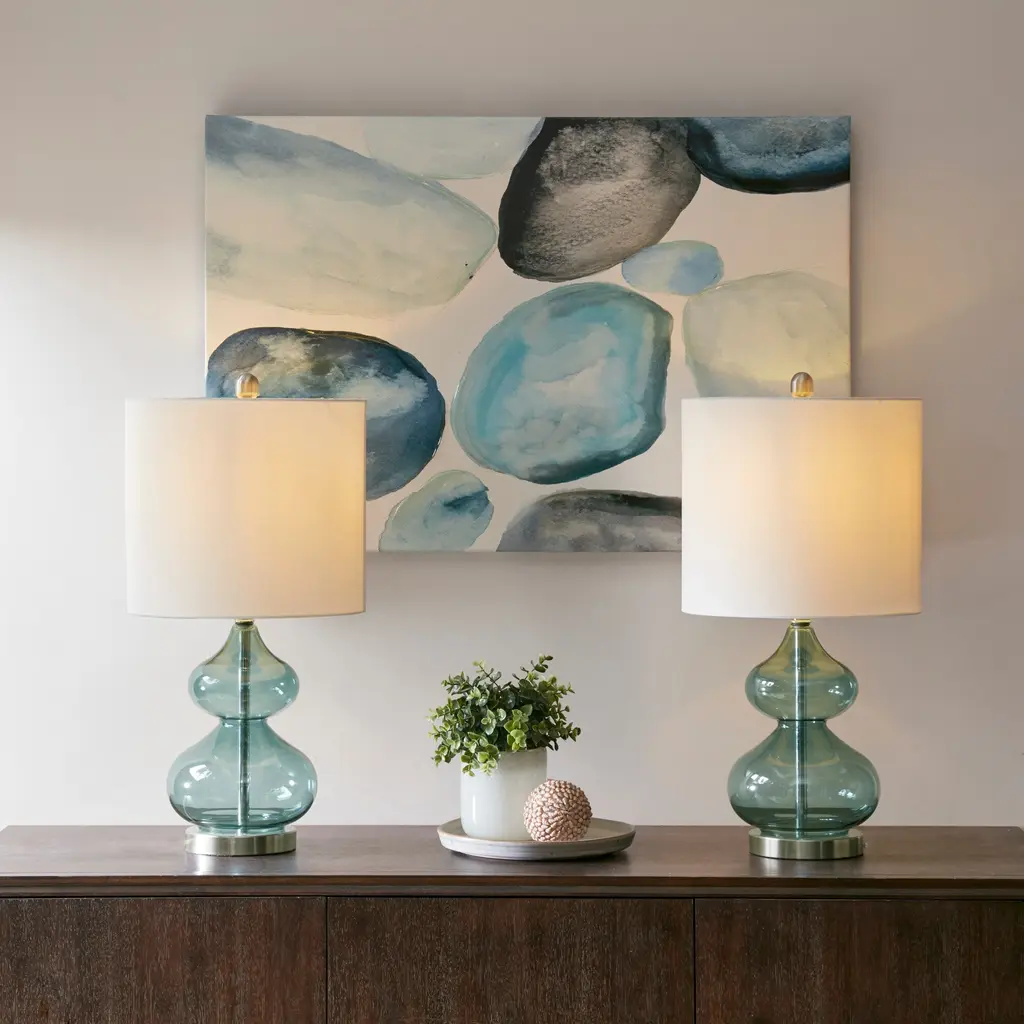Ellipse Curved Gourd Glass Table Lamp, Set Of 2 - Blue